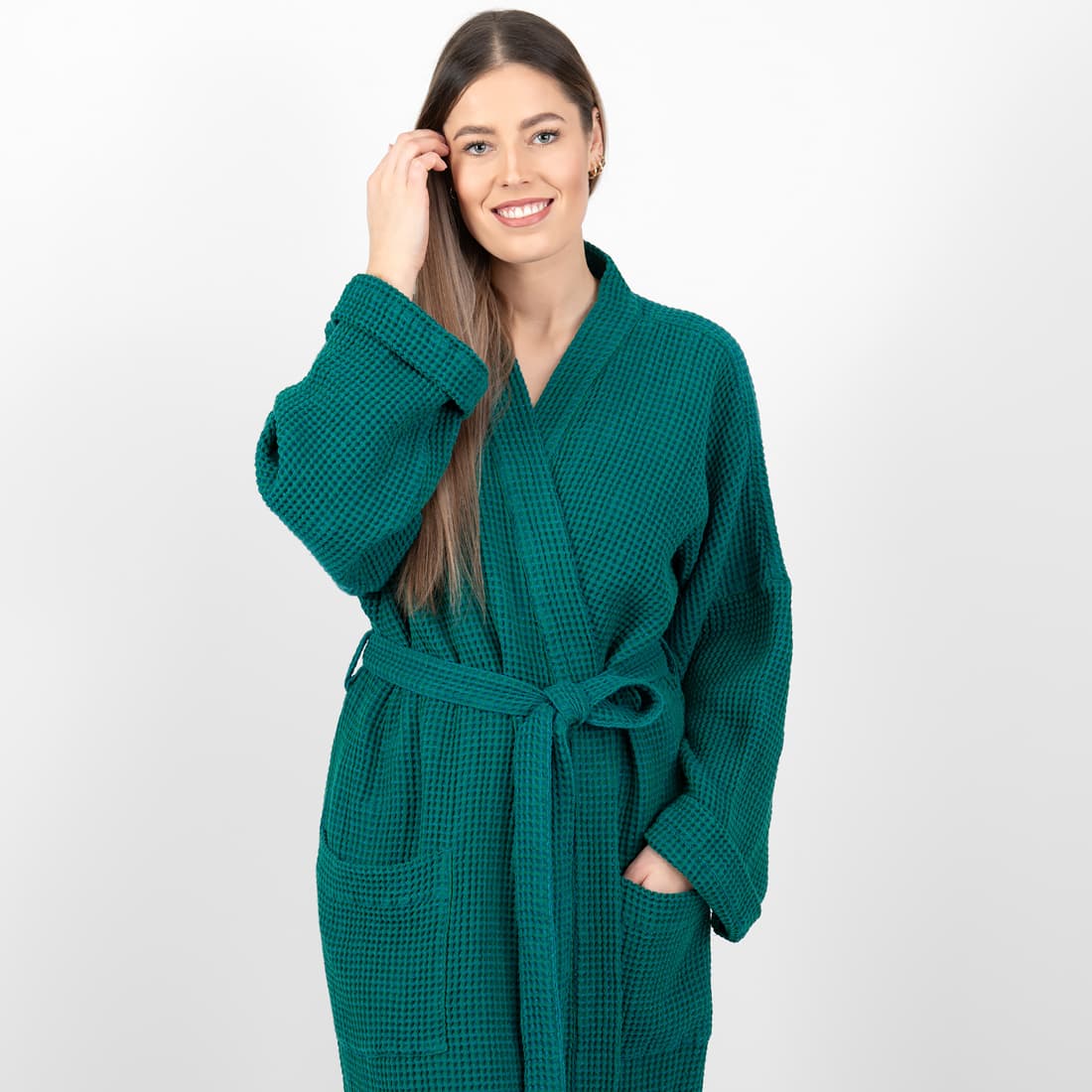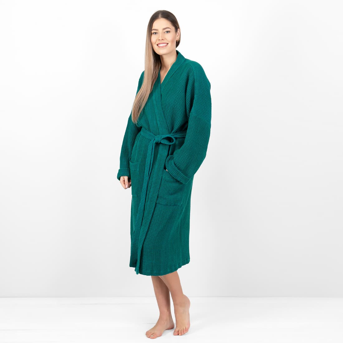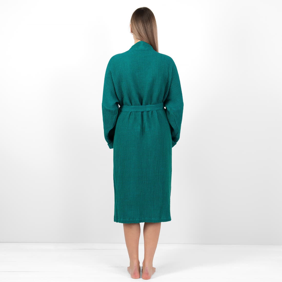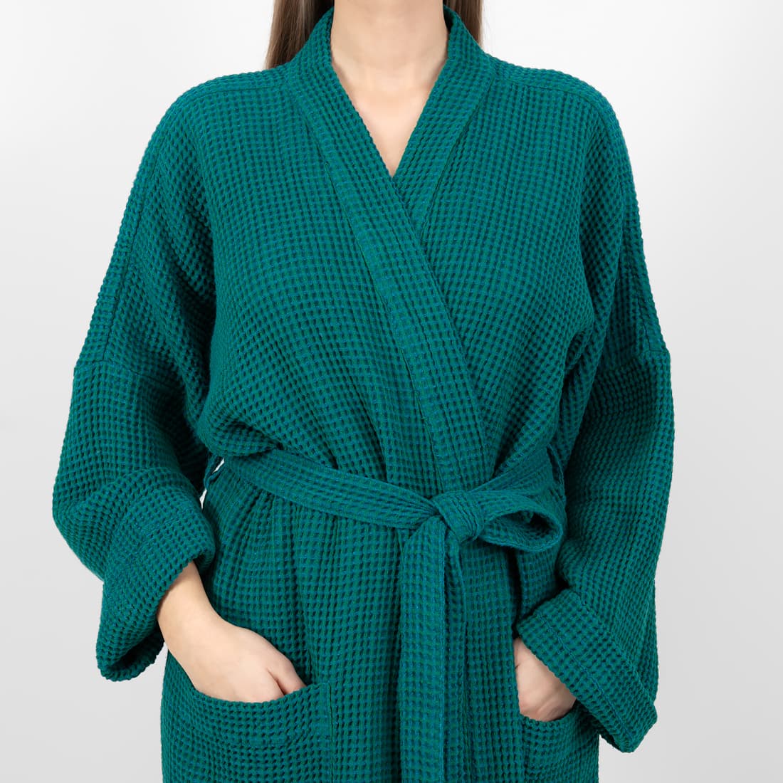 - Kolor: wytkany w melanżu z szmaragdowej i ciemnej turkusowej przędzy