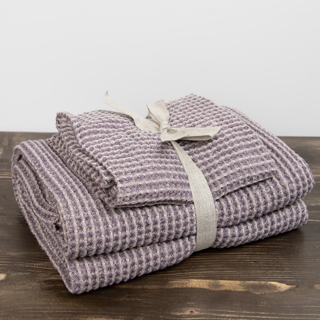 - Szczegóły: pętelka – zawieszka. Komplet ręczników jest ozdobnie przewiązany szeroką wstążeczką