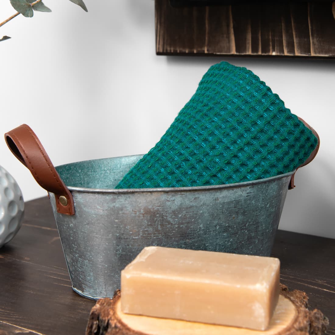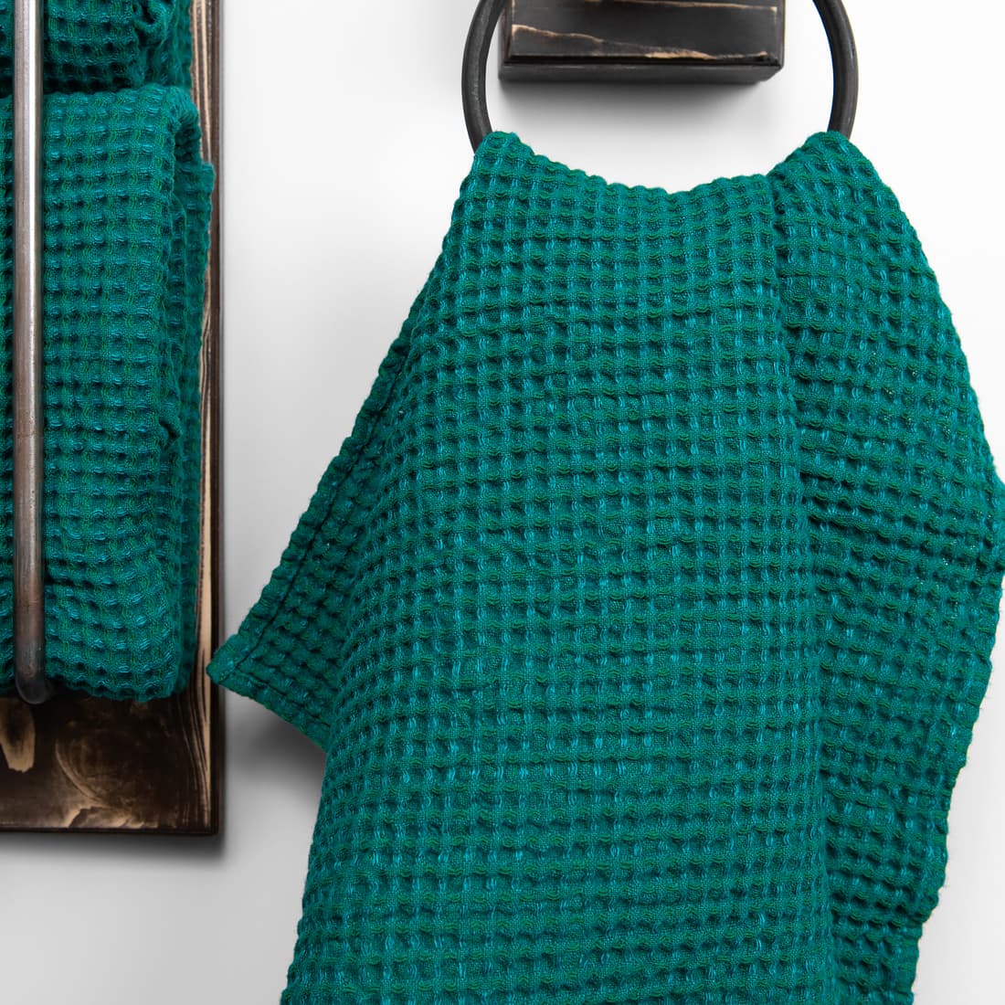 - Kolor: wytkany w melanżu z szmaragdowej i ciemnej turkusowej przędzy