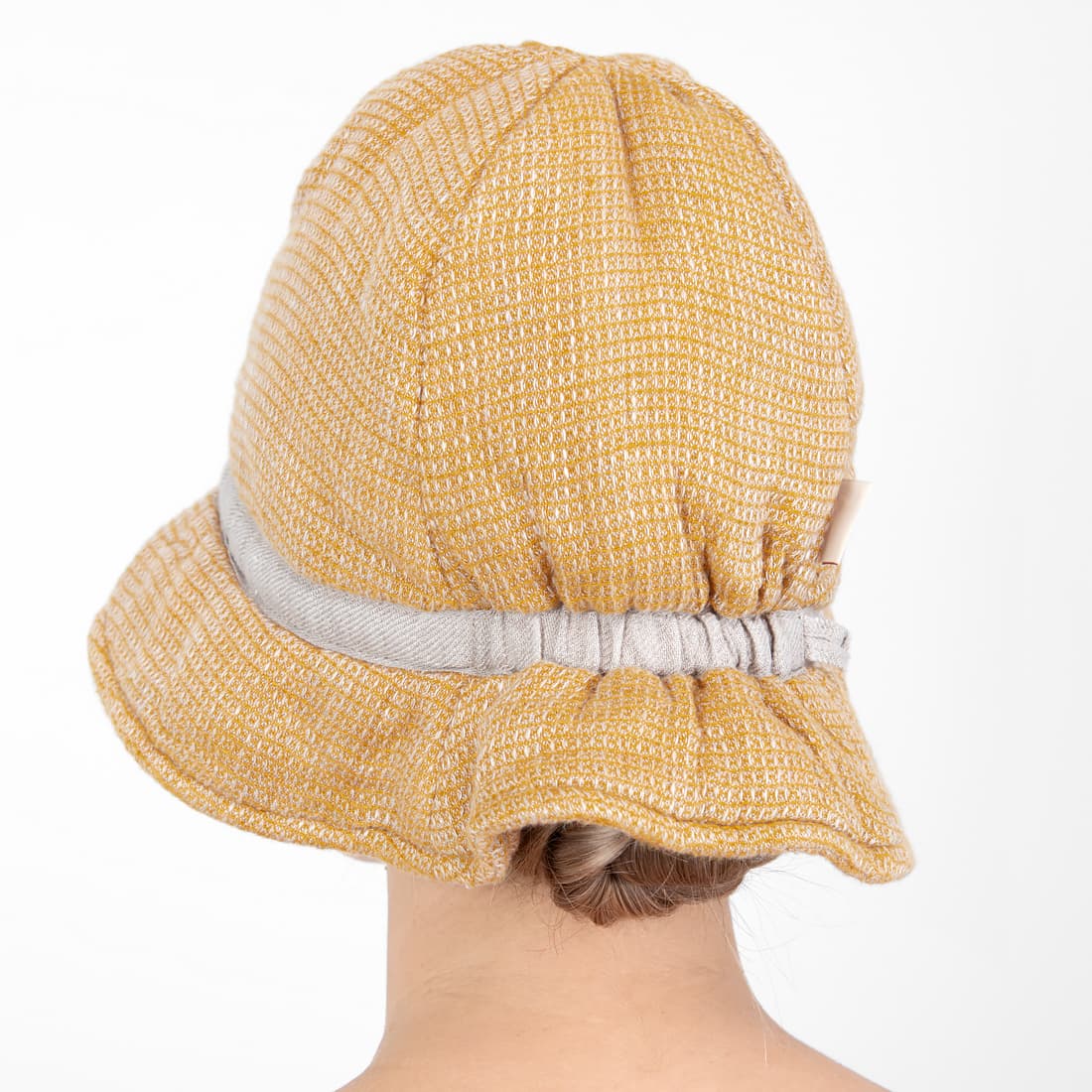 - Kolor: wytkany w melanżu z przędzy żółtej (musztarda) i niebarwionej (szarej w piasek)