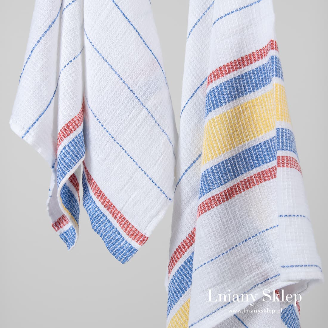 - Kolor: białe tło, paski żółte, niebieskie i czerwone