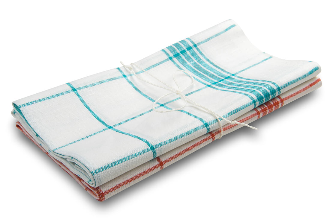 Komplet ręczniczków – ścierek kuchennych „Białystok” składa się z dwóch lniano – bawełnianych ręczniczków. Jeden z nich – wytkany w zieloną na śnieżnobiałym tle kratkę, drugi – w czerwoną. Jakościowe ścierki – ręczniczki kuchenne są wiernymi pomocnikami kuchennymi – długo służą, dobrze wchłaniają wodę. Komplet pasuje na prezent, jest akuratnie przewiązany sznureczkiem lnianym.