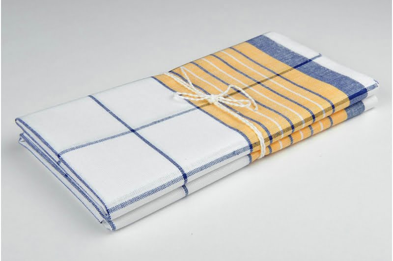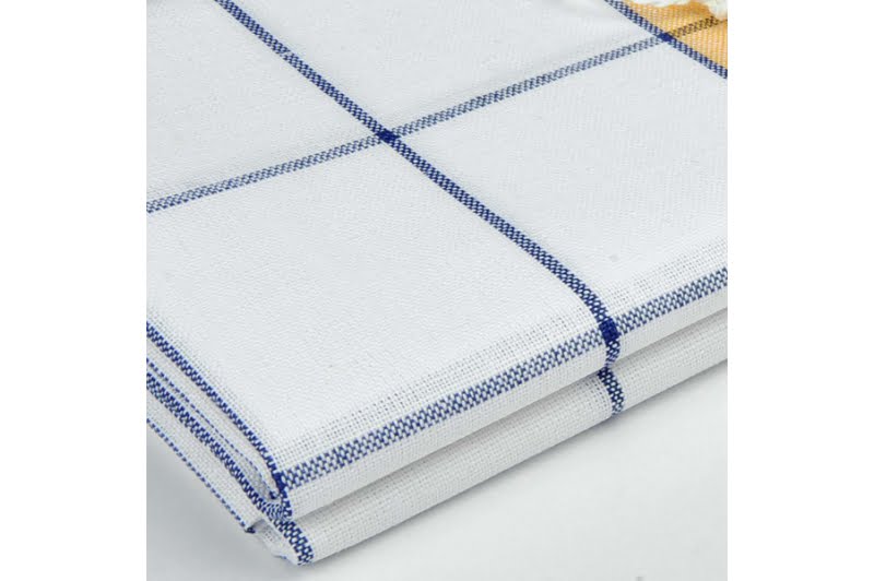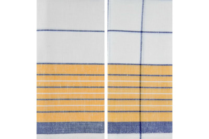 Komplet ręczniczków kuchennych „Dębica” składa się z dwóch białych lniano – bawełnianych ręczniczków. Jeden z nich – wytkany w niebieską kratkę i na dłuższych brzegach ozdobiony żółtymi pasami, drugi – wytkany w niebieskie paski i na dłuższych brzegach ozdobiony żółtymi pasami. Lniano - bawełniane ścierki kuchenne po praniu staną się bardziej miękkie, a wodę wchłaniać będą jeszcze lepiej. Jakościowe ścierki –ręczniczki kuchenne są wiernymi pomocnikami kuchennym.