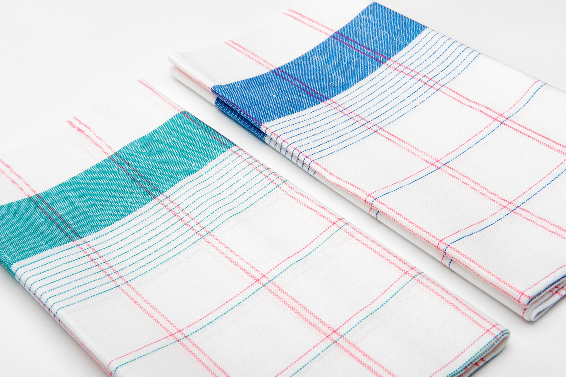 Komplet „Bardo" składa się z dwóch białych ręczników kuchennych z tkaniny lniano - bawełnianej. Jeden z nich - wytkany w niebieskie paski, drugi - w zielone paski. Ręczniki z tkaniny lniano - bawełnianej są doskonale wodochłonne, łatwo się piorą. Komplet ręczników - pomysł na praktyczny prezent. Komplet przewiązany dekoratywnym sznureczkiem.