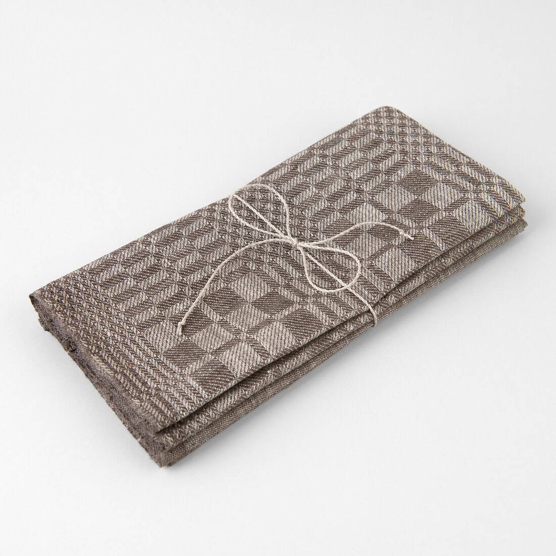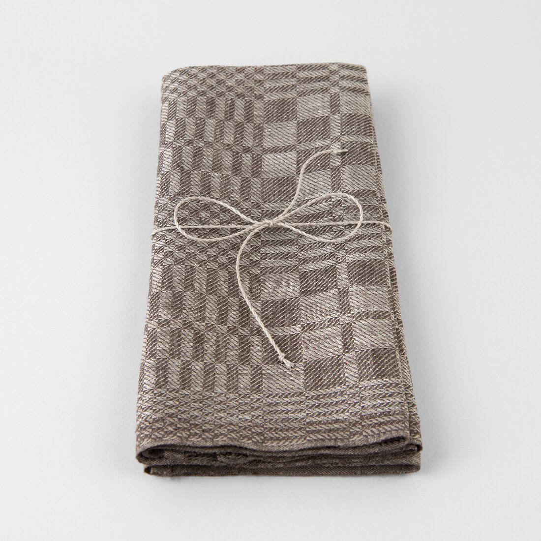 - Kolor: ścierki wytkane z ciemnobrązowej oraz niebarwionej (szarej w piasek przędzy)