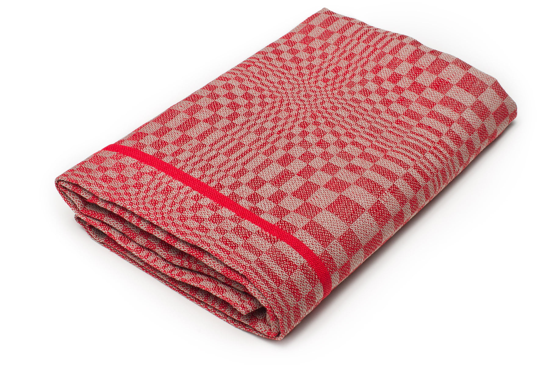 Lniano – bawełniany ręcznik kuchenny wytkany w czerwono-szarą kratkę o różnej wielkości: w optyczny wzór. Jeden z krótszych brzegów ręczniczka ozdobiono jednobarwnym czerwonym paskiem. Duży, naturalny, świetnie wchłaniający wodę ręcznik kuchenny zawsze znajdzie swoje miejsce w kuchni.