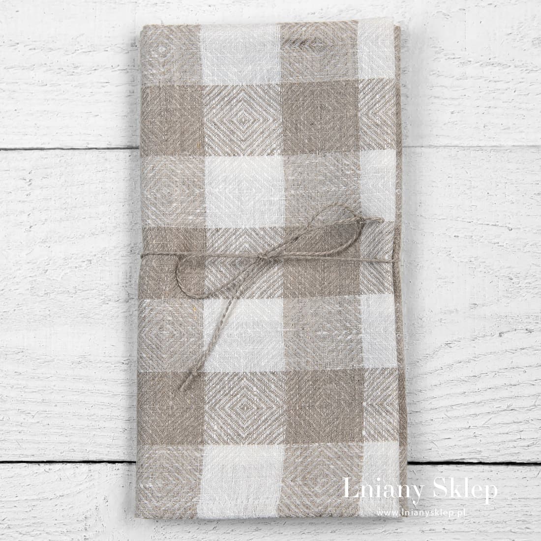 - Kolor: wytkany ze śnieżnobiałej i niebarwionej (szarej o piaskowym odcieniu) przędzy