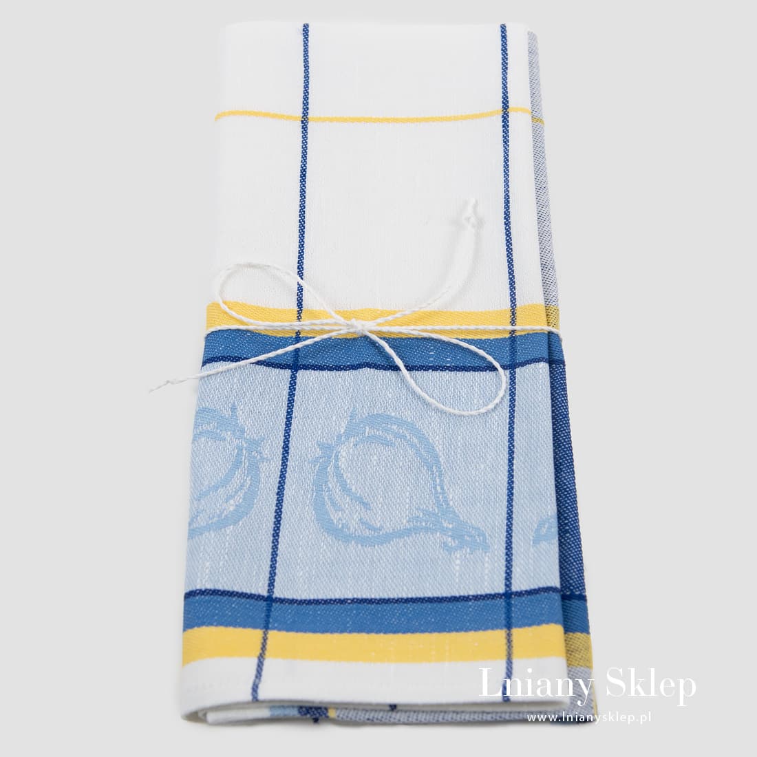 - Kolor: wytkana z białej i niebieskiej oraz żółtej przędzy