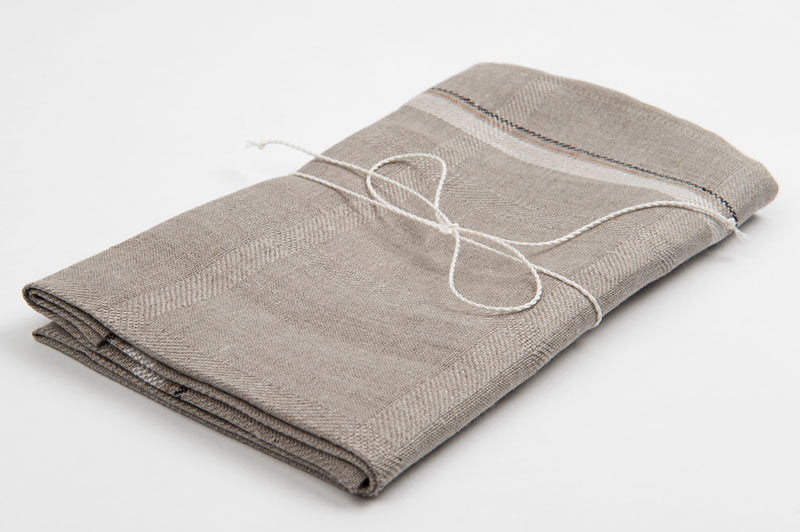 Lniany ręcznik kuchenny wytkany z szarej o różnych odcieniach przędzy we wzór układający się w sporą kratkę. Brzegi ręczniczka zdobią białe, beżowe i czarne paski. Twarda lniana ścierka kuchenna po kilku praniach stanie się miękka, a wodę wchłaniać będzie jeszcze lepiej. Jakościowa lniana ścierka będzie wiernym pomocnikiem kuchennym.