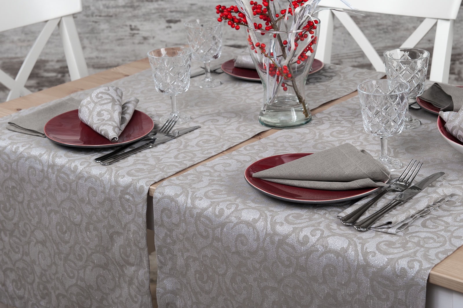 • Żakardowy srebrzysto - szary bieżnik na święto.
