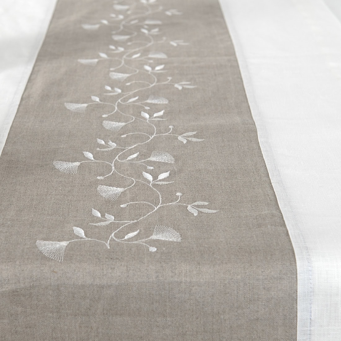 - Kolor: środek – niebarwiony len (szary w piasek), brzegi – z mlecznobiałej (lekko żółtawej) tkaniny lnianej