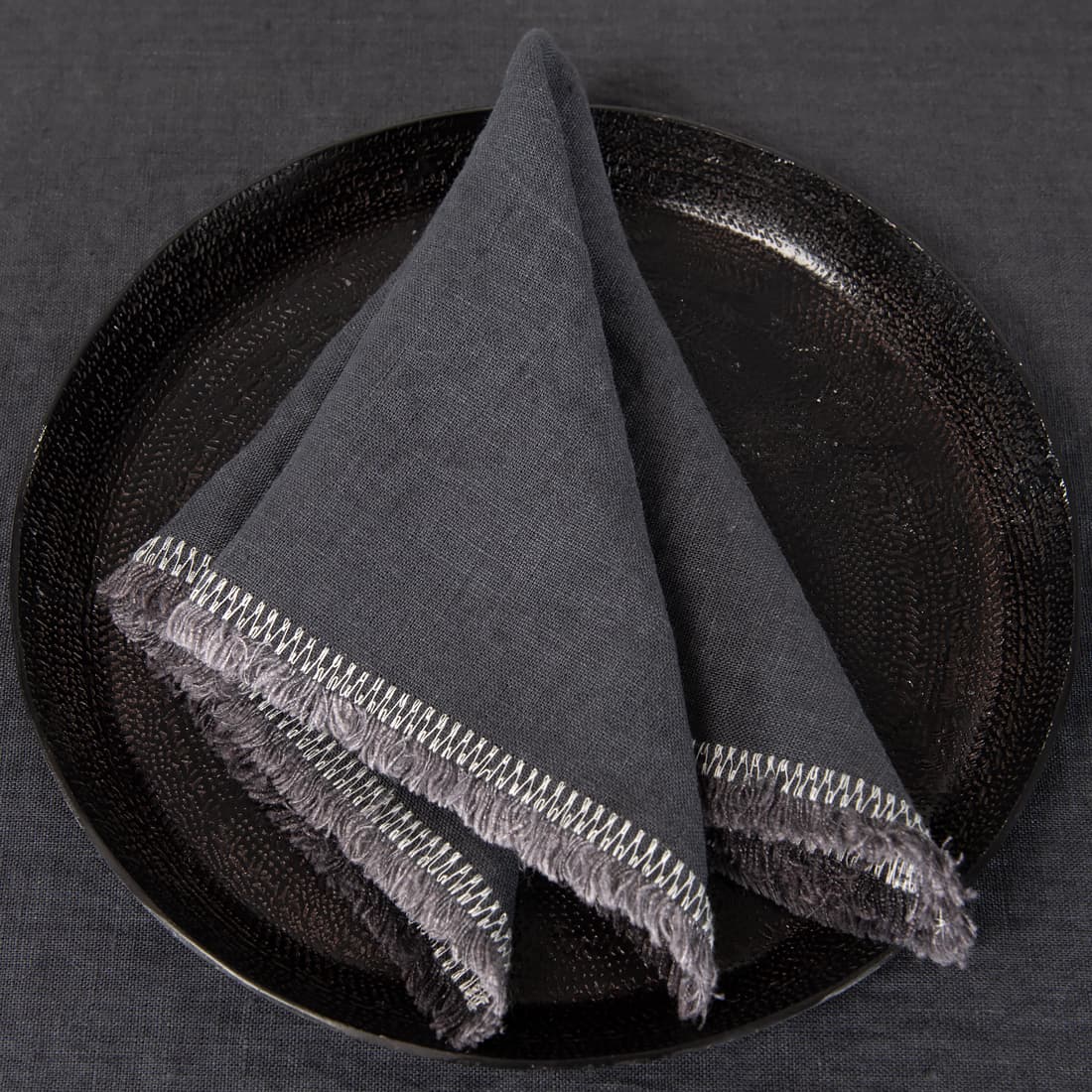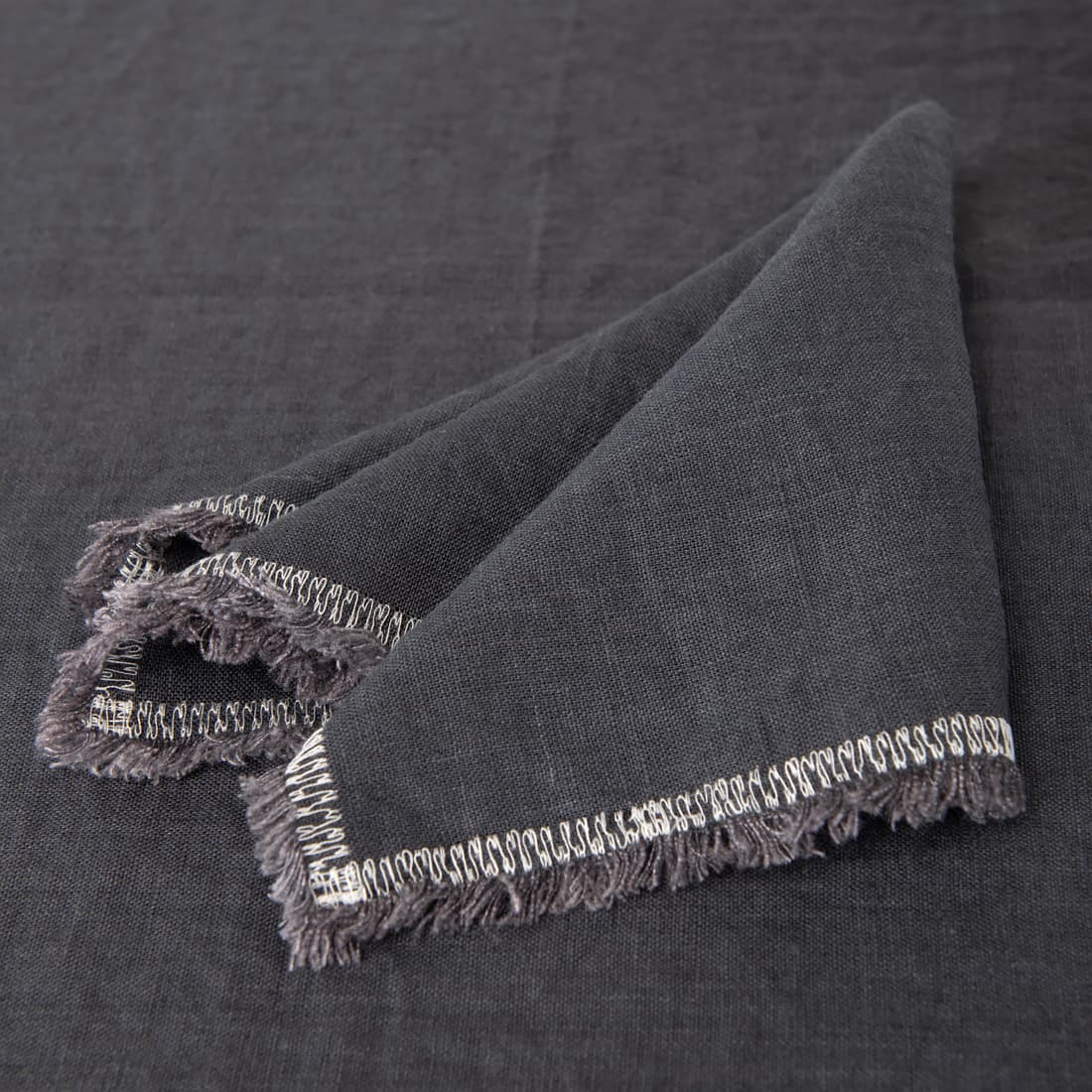 - Wykończenie brzegu: strzępione frędzelki 1,5cm, mlecznobiały ścieg owerlok