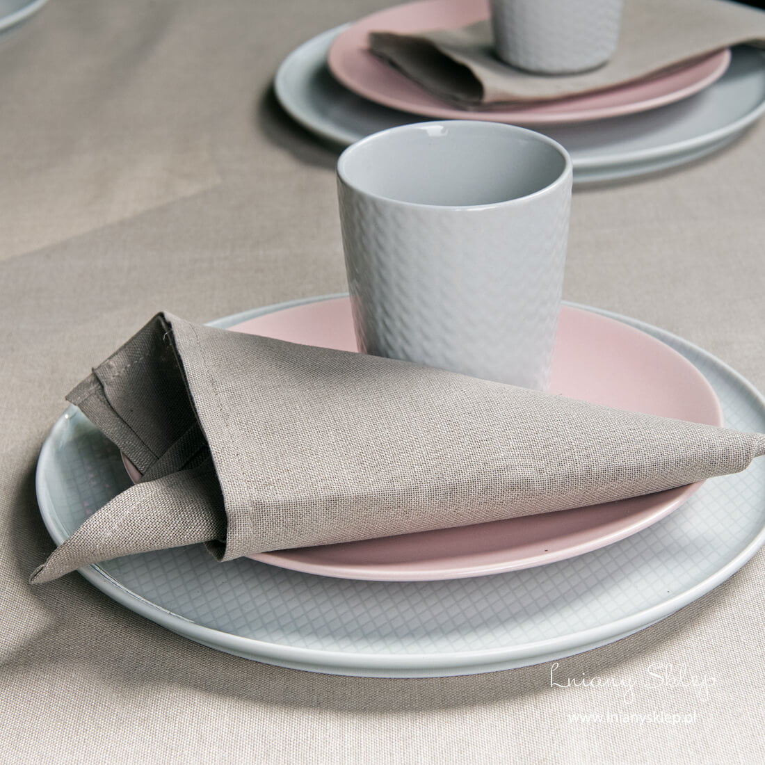Serwetka stołowa z lniano - bawełnianego płótna o barwie naturalnego włókna lnianego.