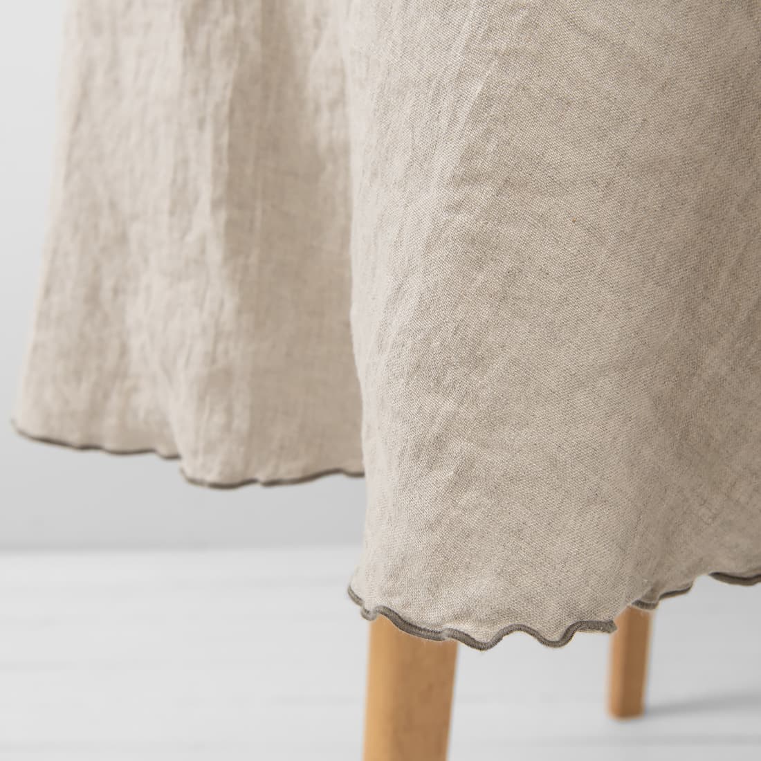 Uwaga: Do wytkania tkaniny użyto naturalnej, niebarwionej przędzy, dlatego odcień rzeczywisty tkaniny może nieco się różnić od koloru tkaniny na fotografii. Przy powtórnym zamówieniu, odcień tej samej tkaniny może się nieco różnić od poprzednio zamówionej. Produkt został uszyty z pranej tkaniny, dlatego rozmiar może nieco się wahać.