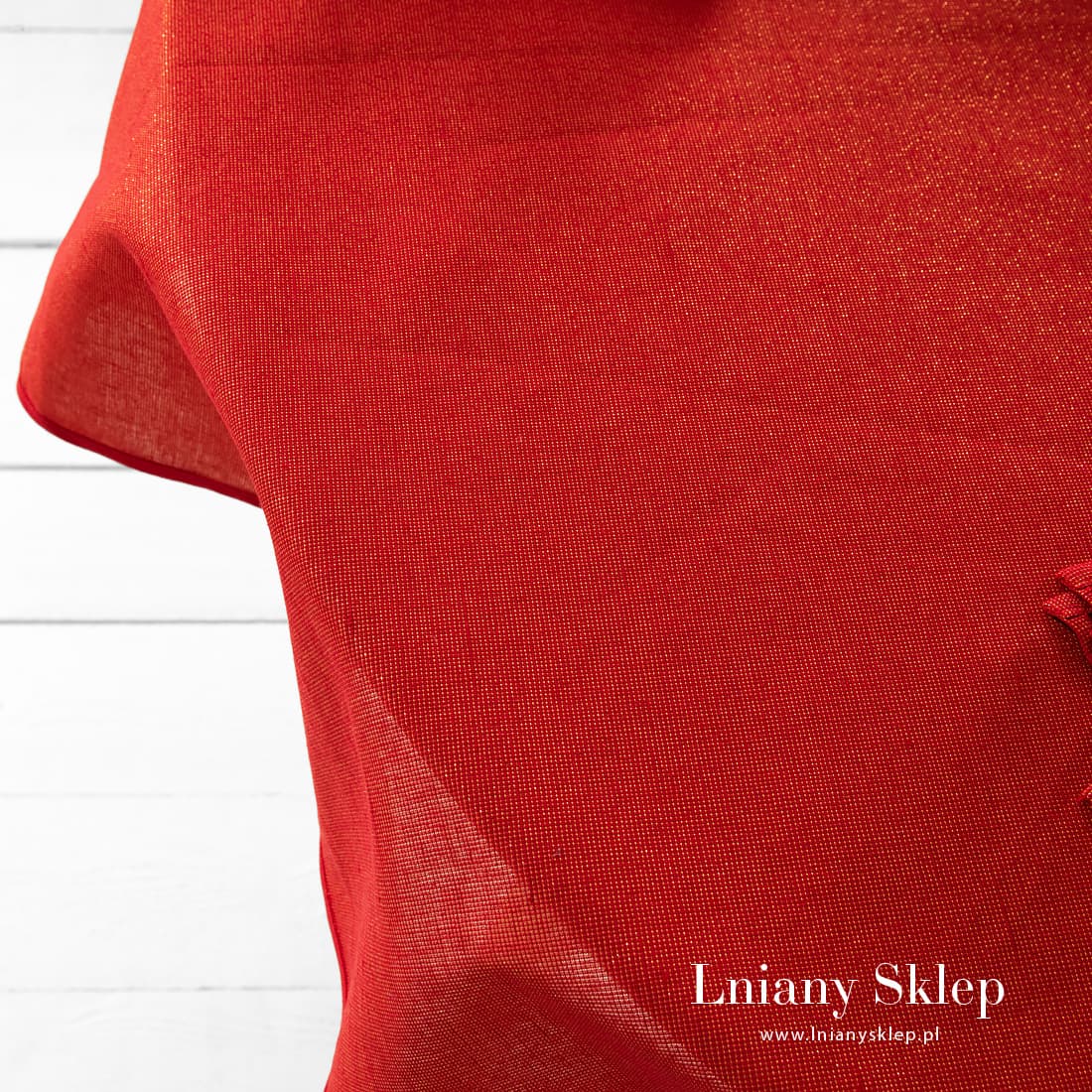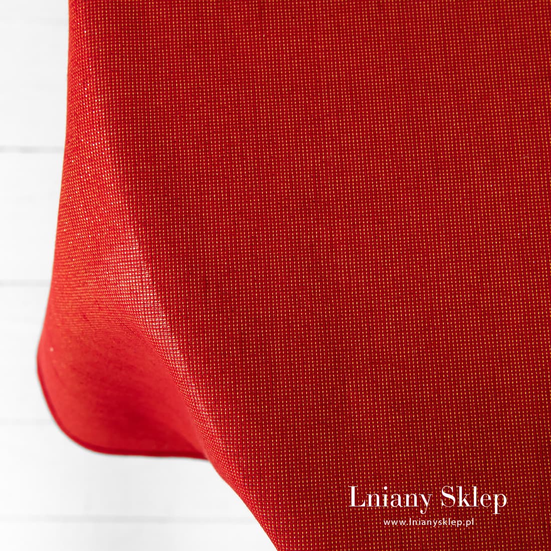 - Czerwona o złotym połysku tkanina idealnie podkreśli odświętny wystrój wnętrza. Nakryj stół na Wigilię, Sylwestra, Dzień Urodzin i inne święta.