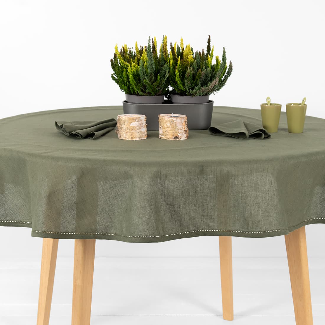 • Lniano - bawełniany okrągły lub owalny zielony obrus.