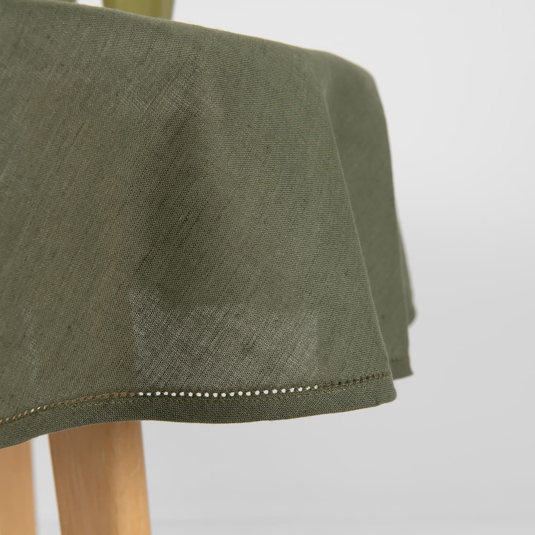 • Gładko wytany zielony obrus.