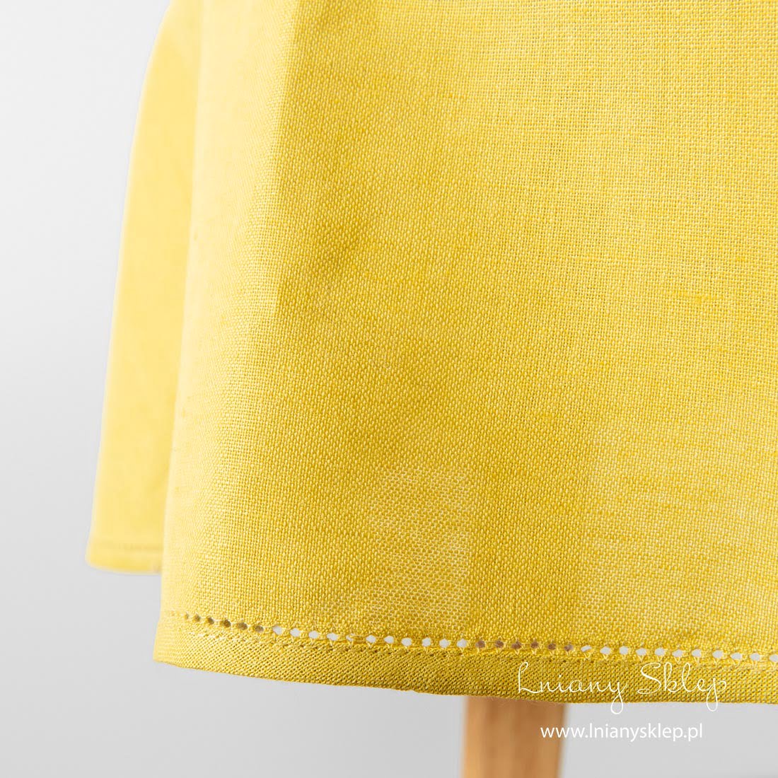 Żółty odbrus wielkanocny okrągły lub owalny z tkaniny lniano – bawełnianej jest dostępna w następujących rozmiarach: okrągły – o średnicy 150cm, a owalny dostępny w dwóch rozmiarach: 150cm x 200cm oraz 150cm x 250cm. Brzegi obrusu ozdobiliśmy 1 rzędem mereżki. Wiosenna elegancja w kolorze świeżutkich żonkili pięknie ozdobi wielkanocny stół. Dobierz lniano – bawełniane żółte serwetki z naszej kolekcji!