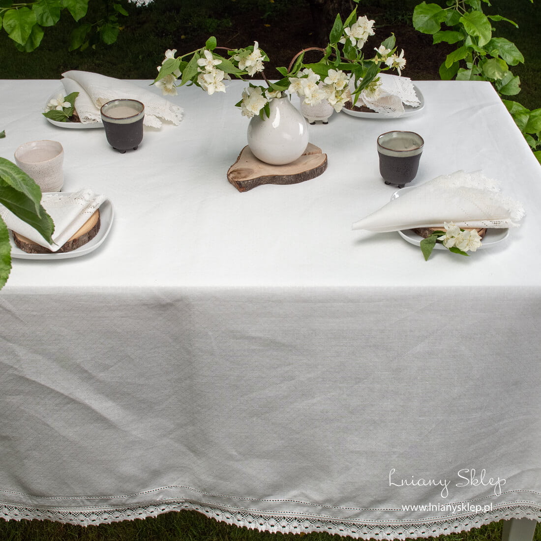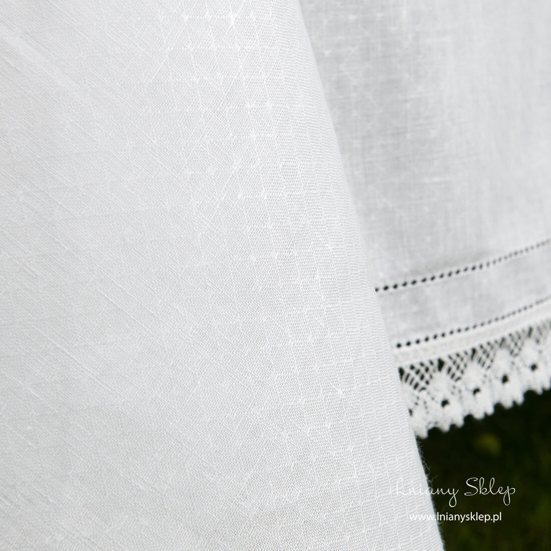 Biały ażurowy obrus z koronką został wykonany z mlecznobiałej (lekko żółtawej) tkaniny 100% lnianej wytkanej we wzór delikatnych, nieprzeźroczystych rombów. Brzeg obrusu zdobią dwa rzędy mereżki i delikatne lniane koronki. Obrus dostępny w 15 rozmiarach – wybierz ten – najbardziej odpowiedni! W kolekcji mamy dopasowane serwetki – zajrzyj do naszej kolekcji bankietek.