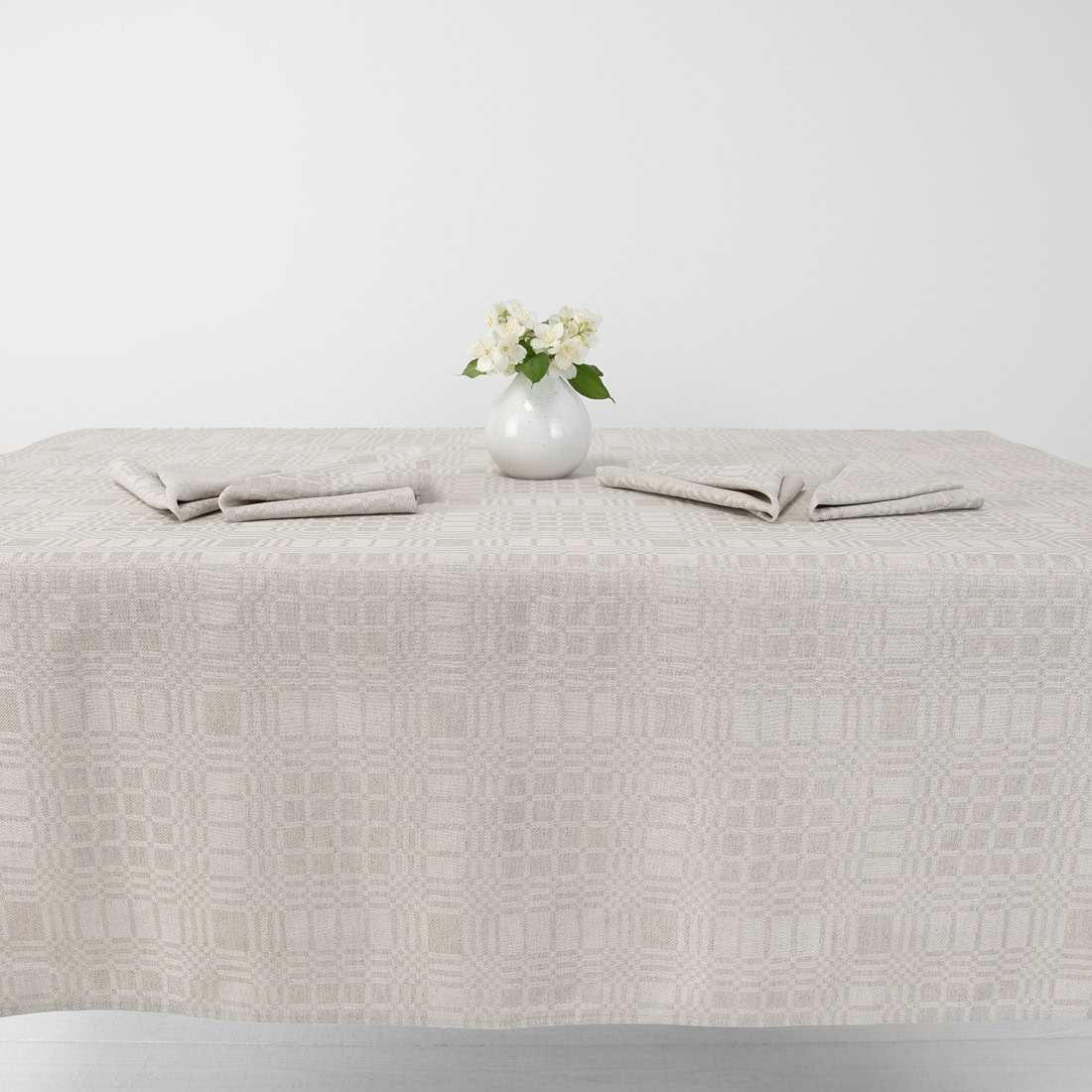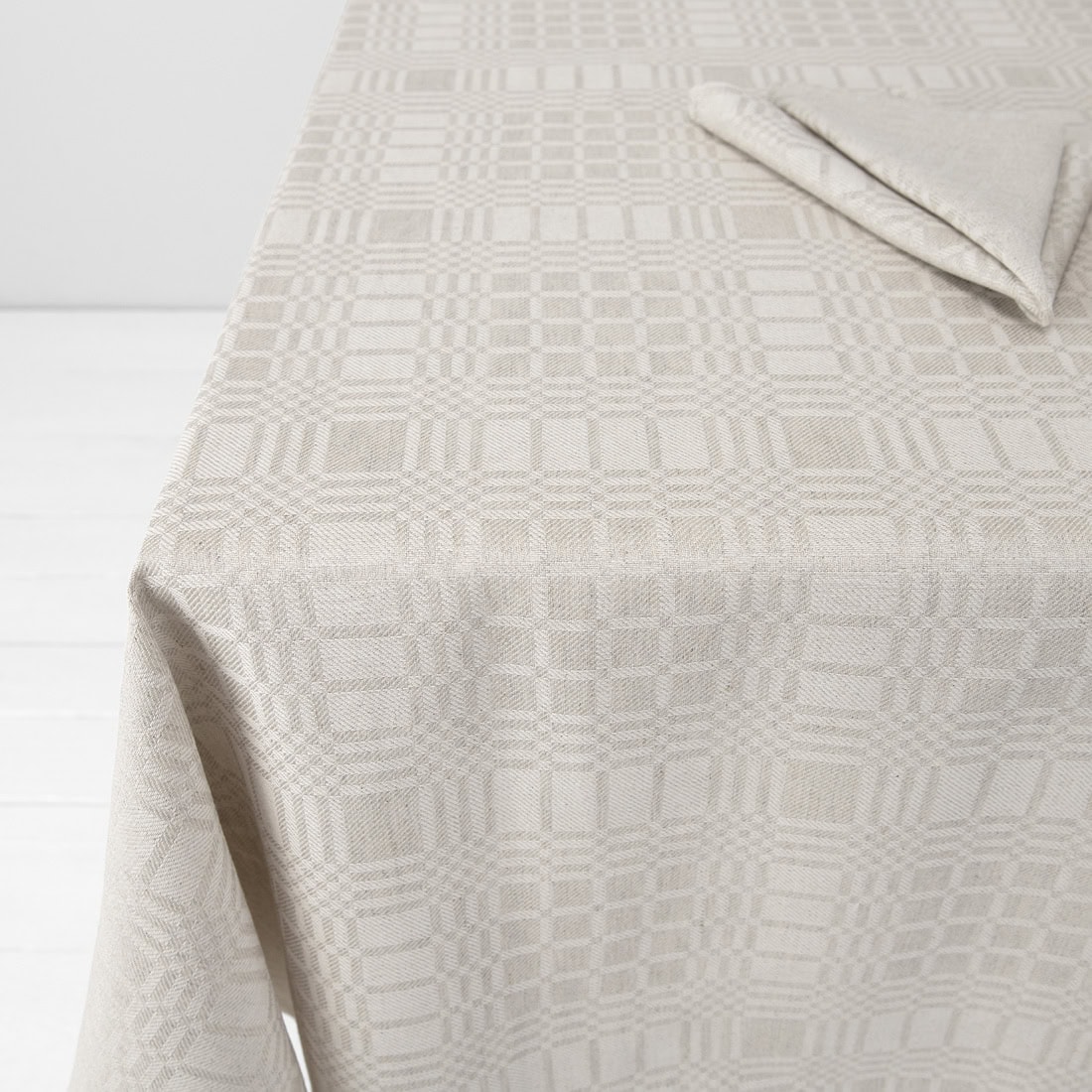 - Kolor: wytkana z białej bawełnianej i niebarwionej (szarej w piasek) lnianej przędzy