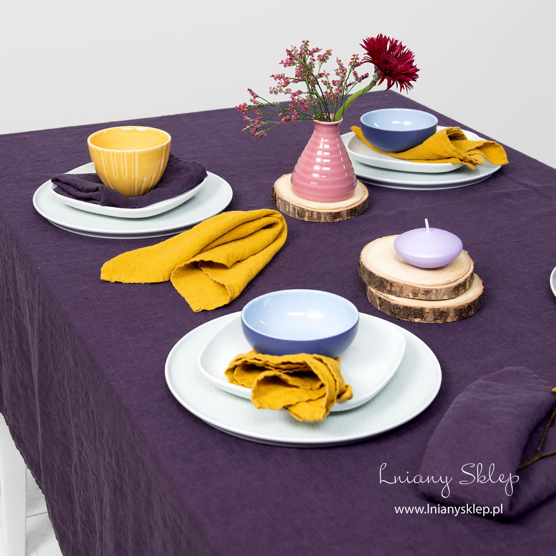 Fioletowy obrus prany len ma odcień głęboki, nasycony, bogaty. Miękki, prany len nie wymaga prasowania. Dobierz do tego obrusu serwetki z pranego lnu w identycznym w kolorze albo kontrastowe – słonecznie żółte. Nakryj pięknie stół, ciesz się przepychem wspaniałych kolorów!