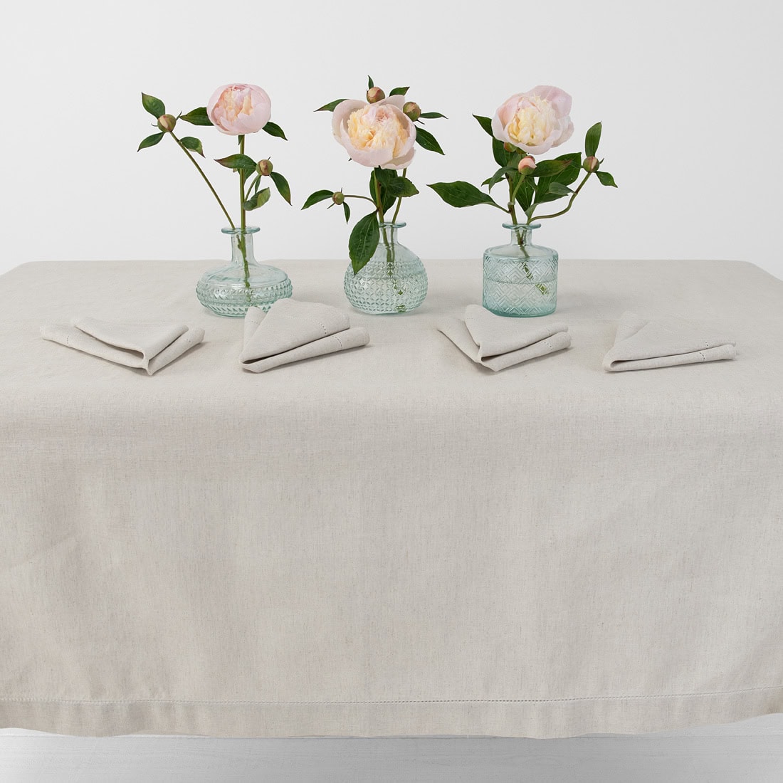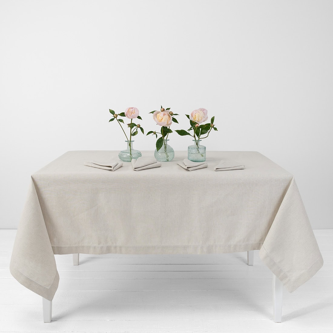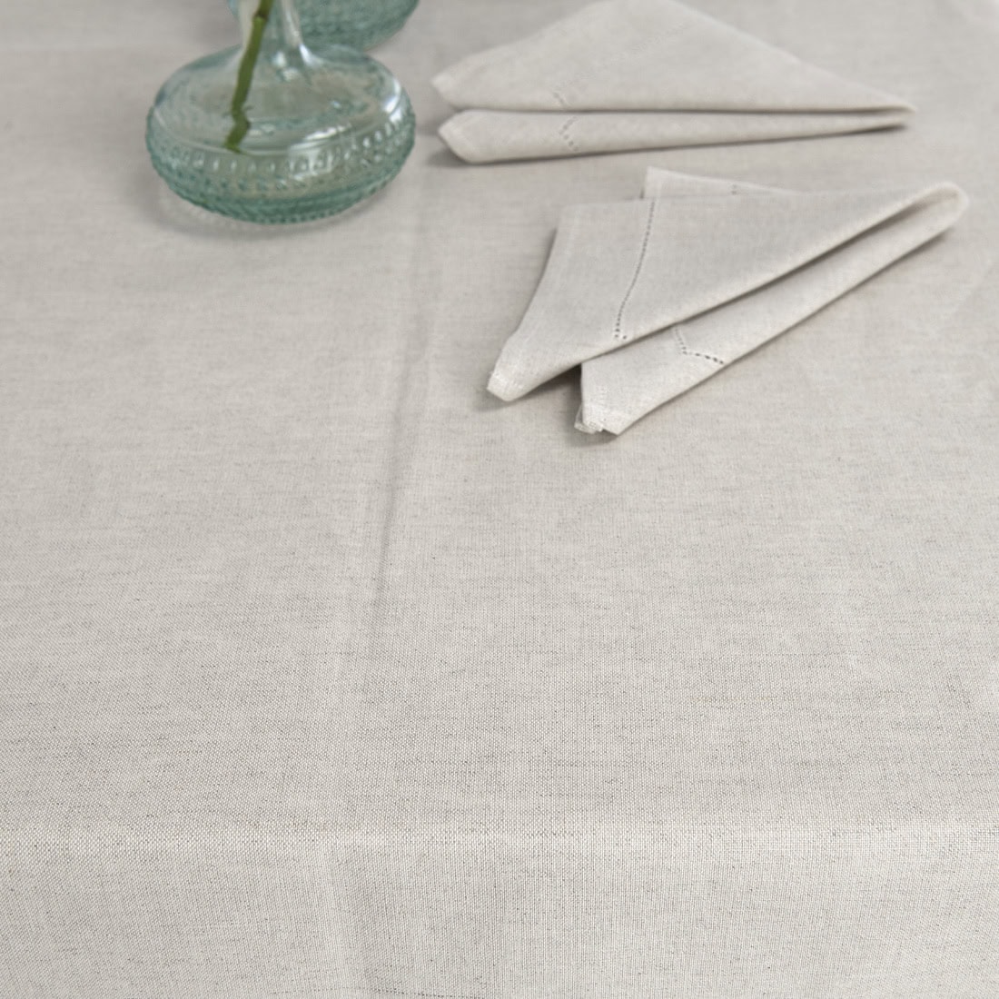 - Kolor: wytkany w melanżu z przędzy białej bawełnianej i lnianej niebarwionej (szarej w piasek)Wzór: splot płócienny