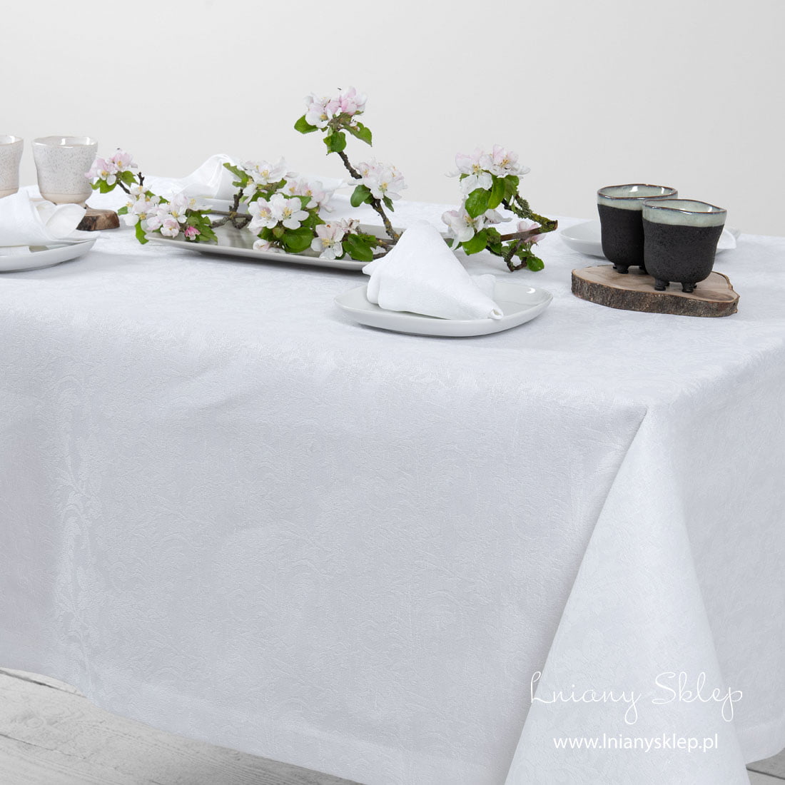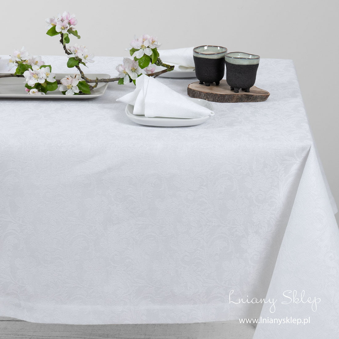 Lniano - bawełniany biały (odcień śniegu) żakardowy obrus wytkany w fantazyjny wzór kwiatowy. Obrus przypomina oszronione zimą okno. Pięknie się będzie prezentował na świątecznym stole. W naszej kolekcji można znaleźć serwetki stołowe z identycznej żakardowej tkaniny.