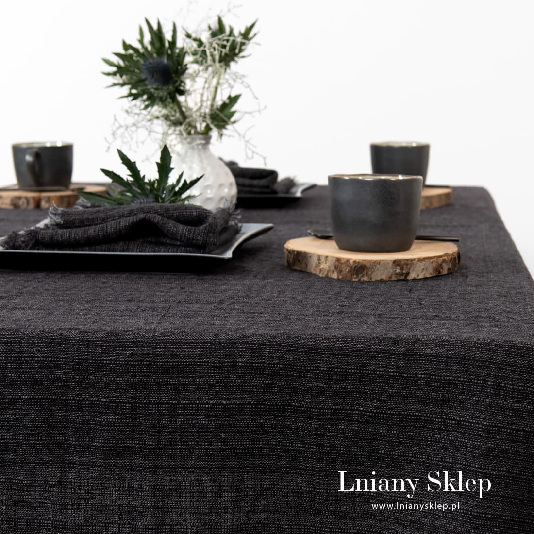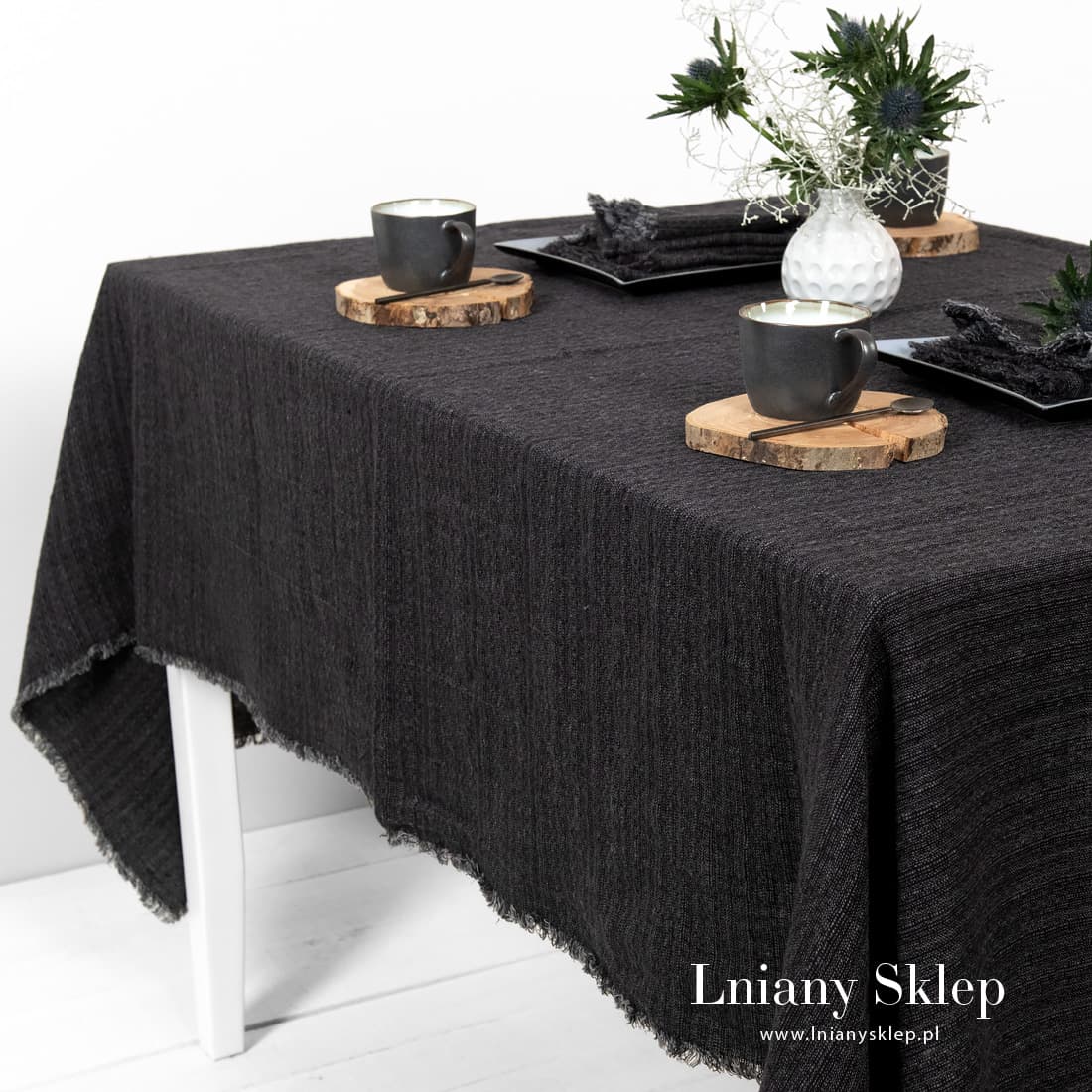 Szary obrus z pranej tkaniny lnianej wytkanej z przędzy czarnej i ciemnoszarej. Brzegi zdobią figlarne strzępione frędzelki długie 1,5cm. W naszej kolekcji znajdziesz serwetki z identycznej tkaniny. Wykwintny ciemny obrus z pranego lnu może być wyszukaną alterantywą tradycyjnemu białemu obrusowi.