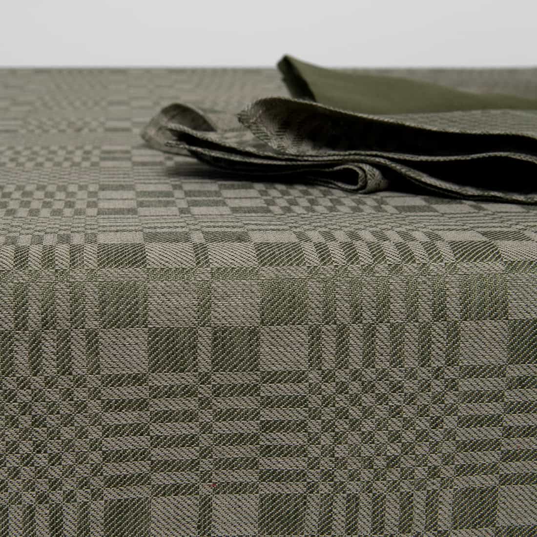 - Kolor: wytkany z przędzy szarej i zielonej (khaki – ciemna zieleń w brąz)