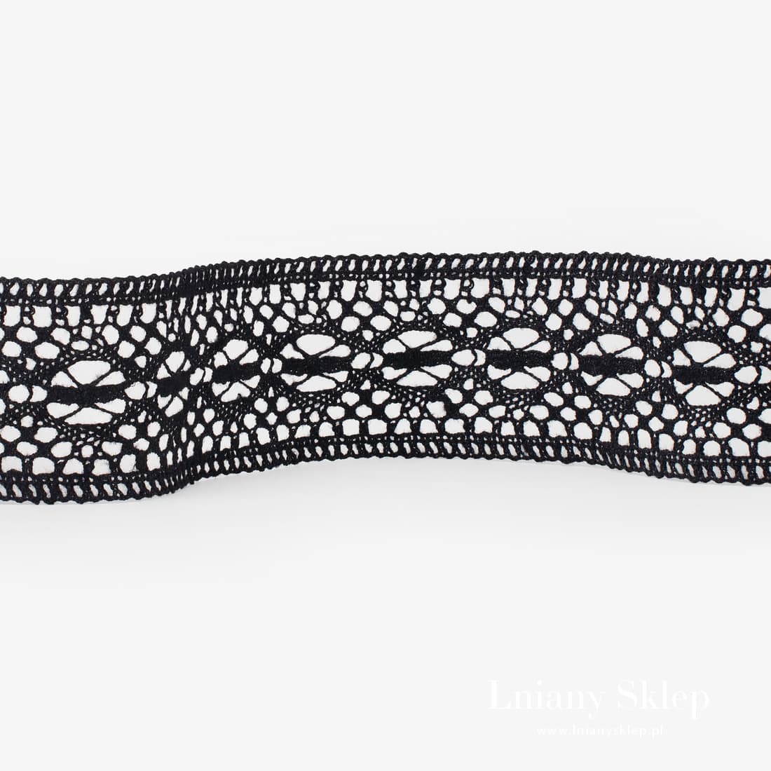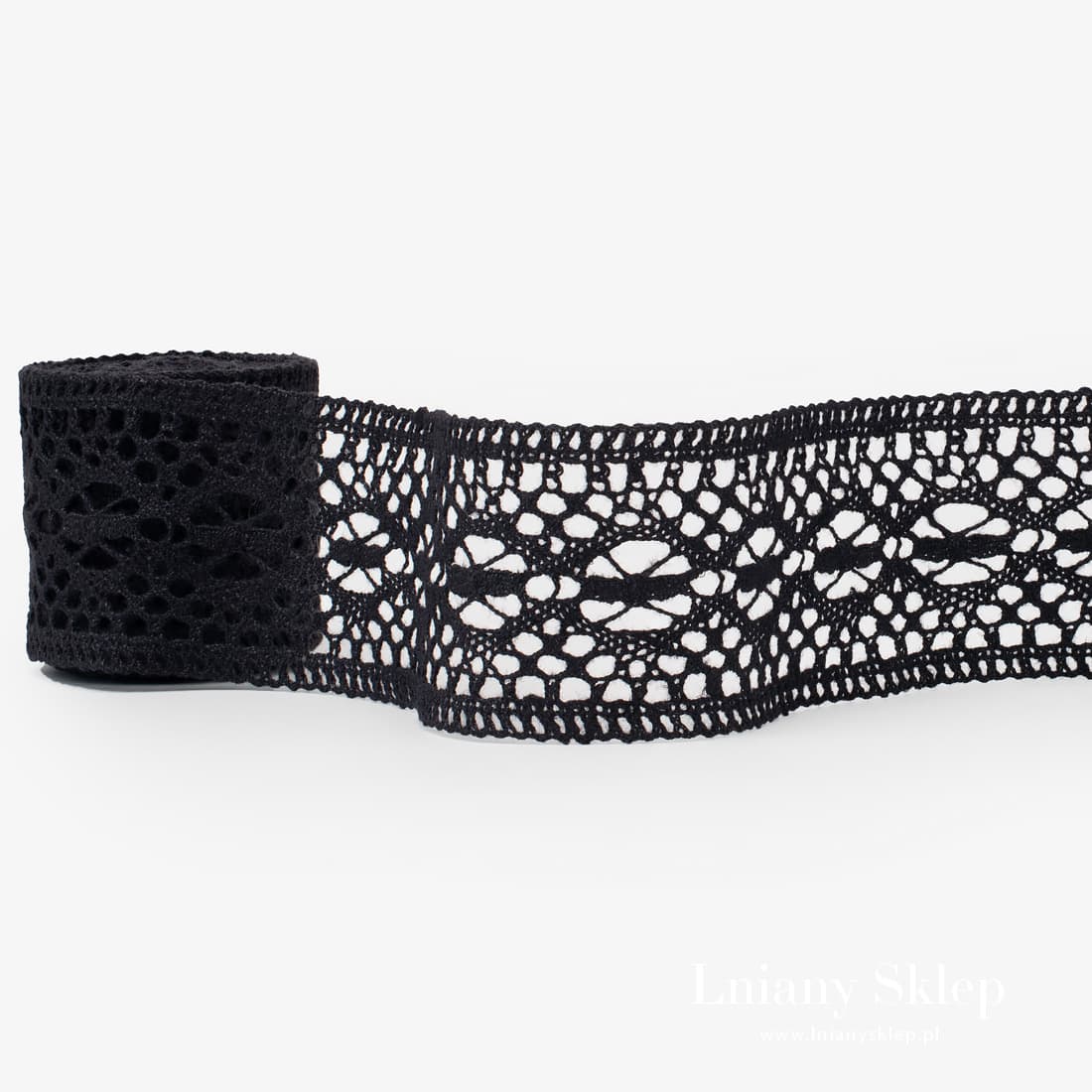 Czarna koronka lniana pięknie doda elegancji i lekkości strojowi albo któremuś z tekstyliów domowych. Szeroka 5,5cm.