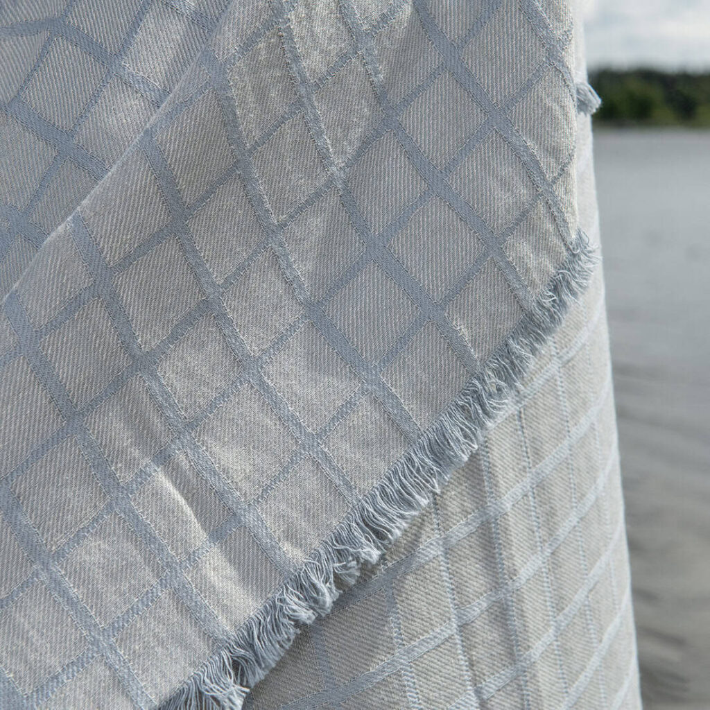 - Kolor: wytkany z przędzy niebieskawej w szarość i dymnoszarej