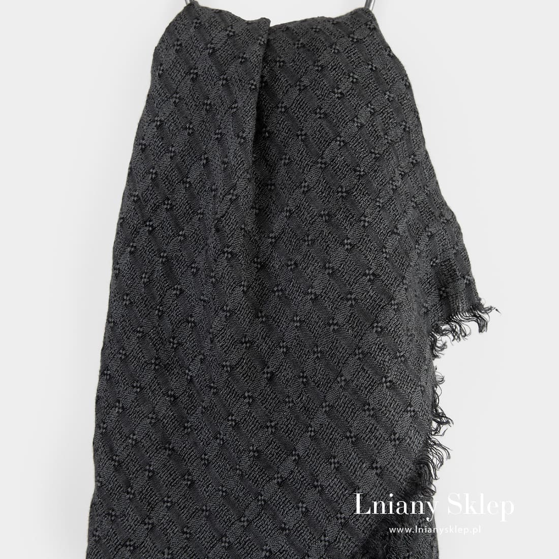 - Kolor: wytkany z czarnej i ciemnoszarej przędzy