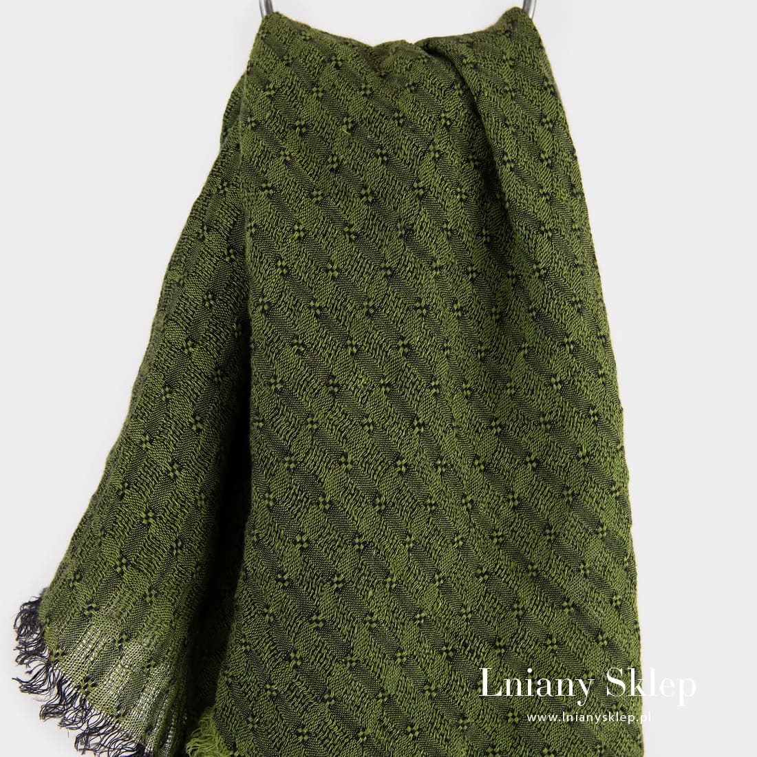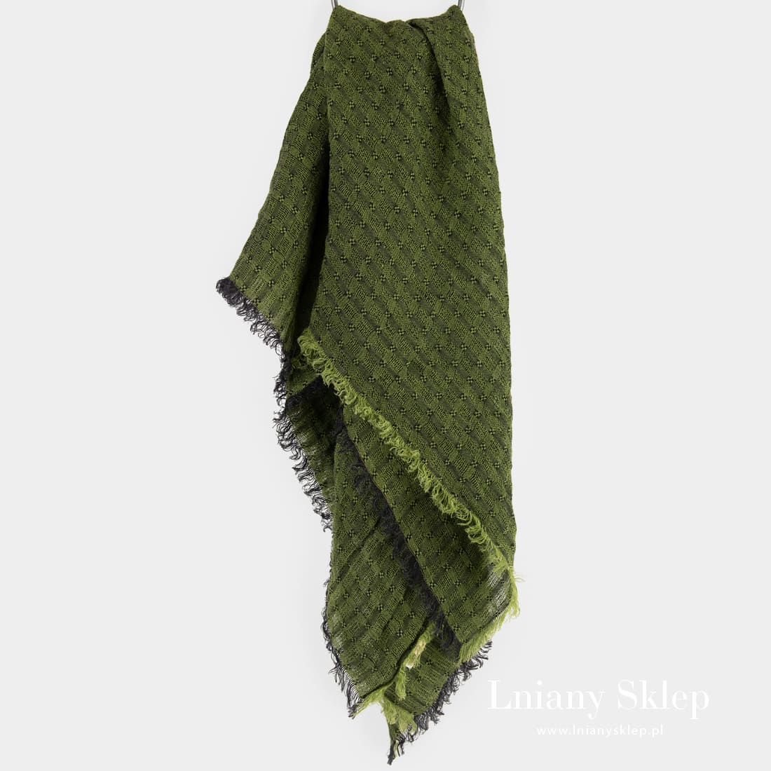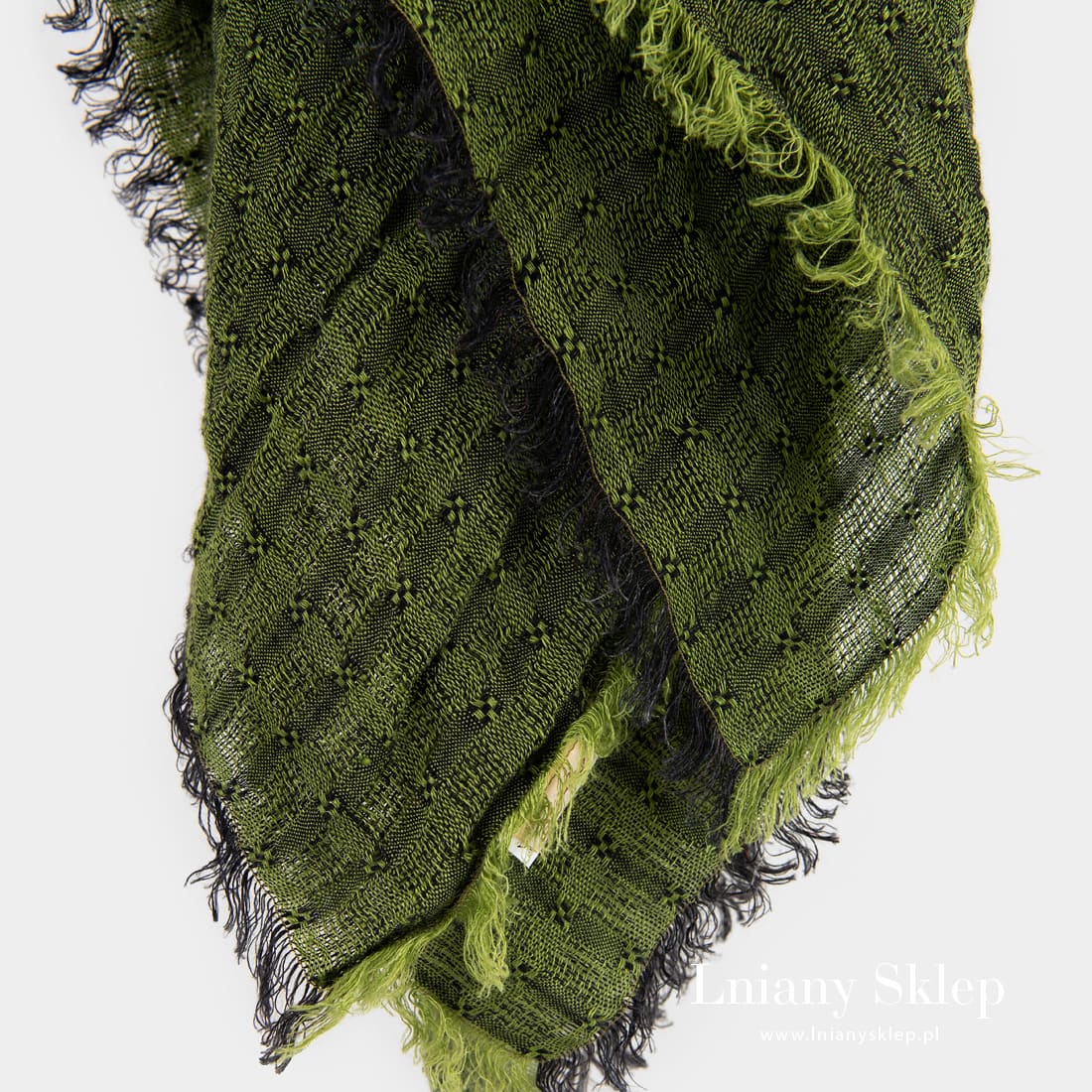 - Detale: strzępione frędzelki 2cm na wszystkich brzegach
