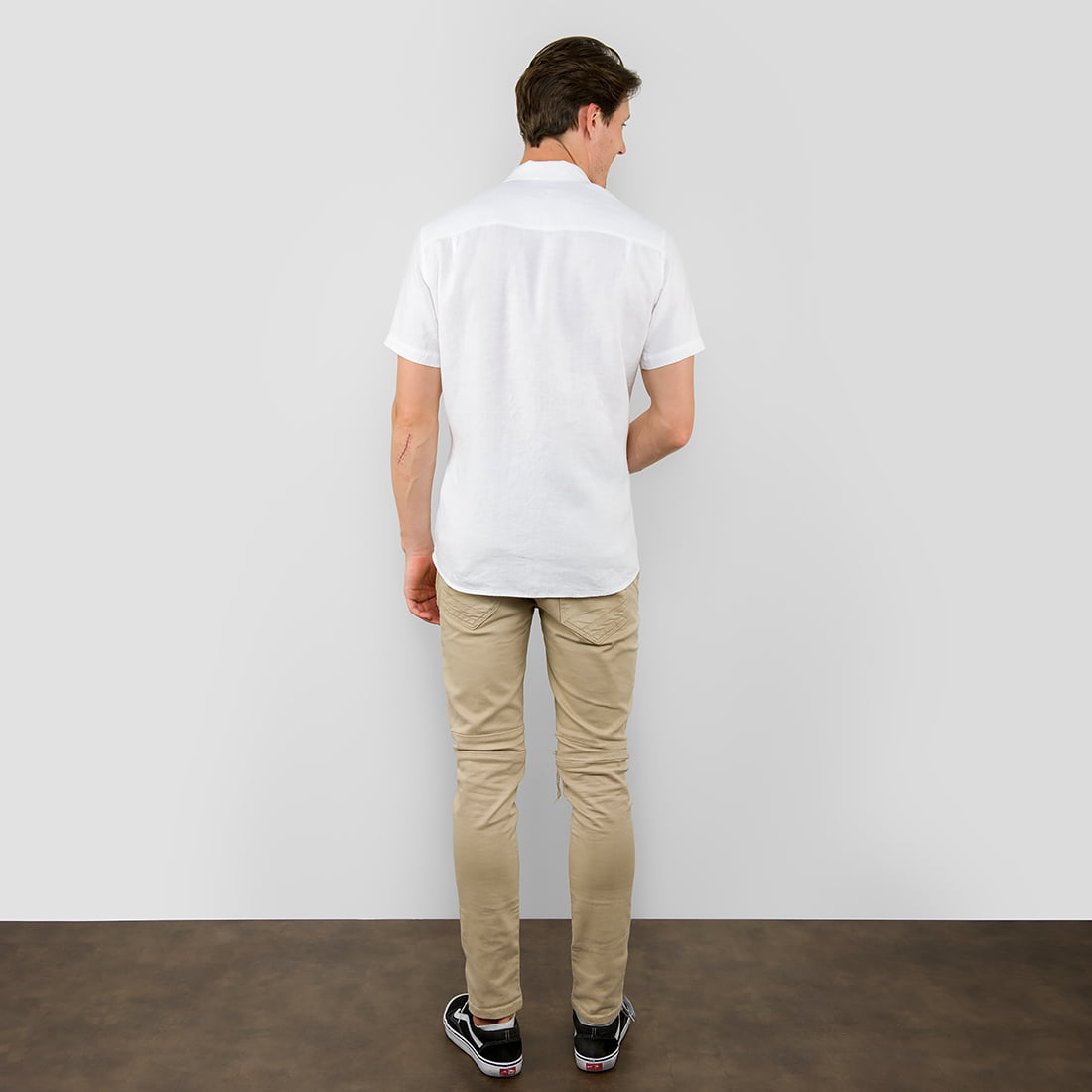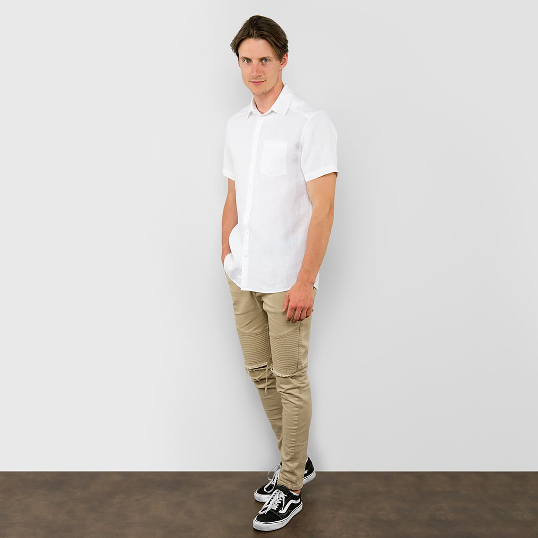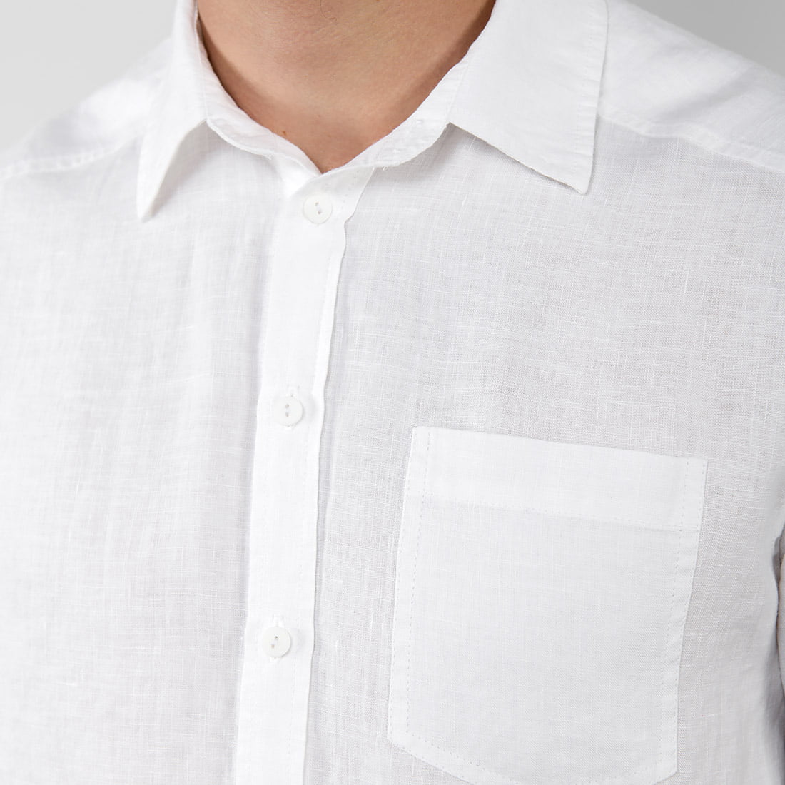 Lniana śnieżnobiała koszula męska dla miłośników klasycznej elegancji. Len pozwala na pełny komfort w czasie letnich upałów. Można ją włożyć na wiele najróżniejszych okazji.