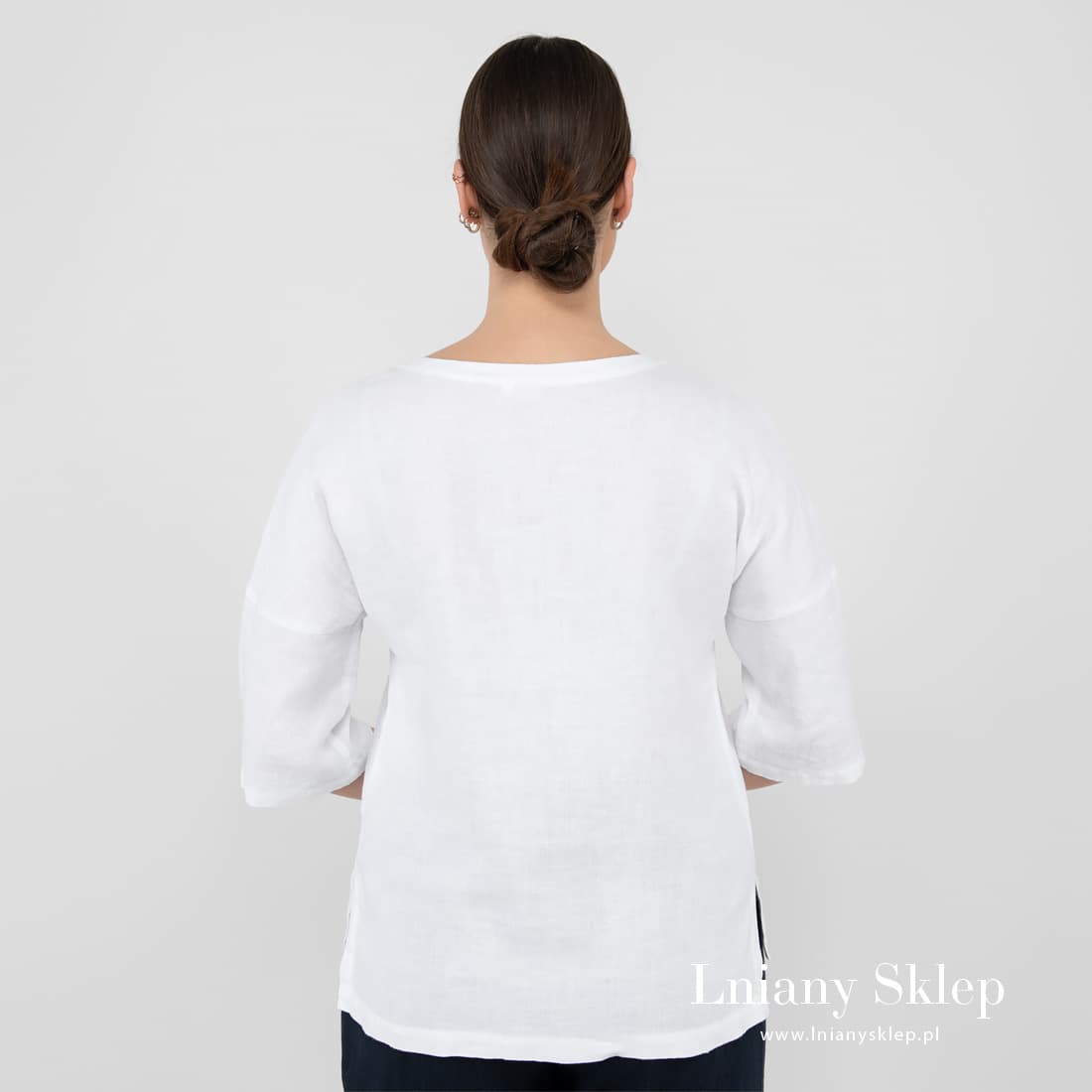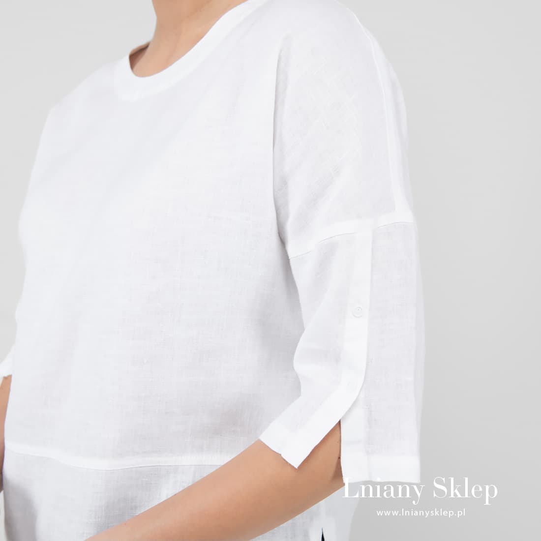 - Szczegóły: dekolt łódka, rękaw ¾ zapinany na napy, w dole rozporki