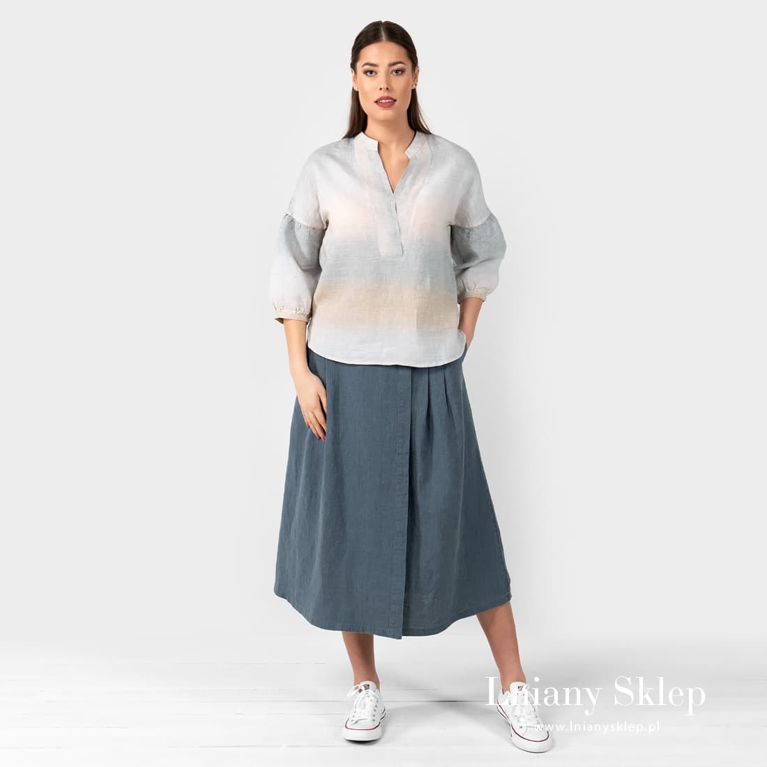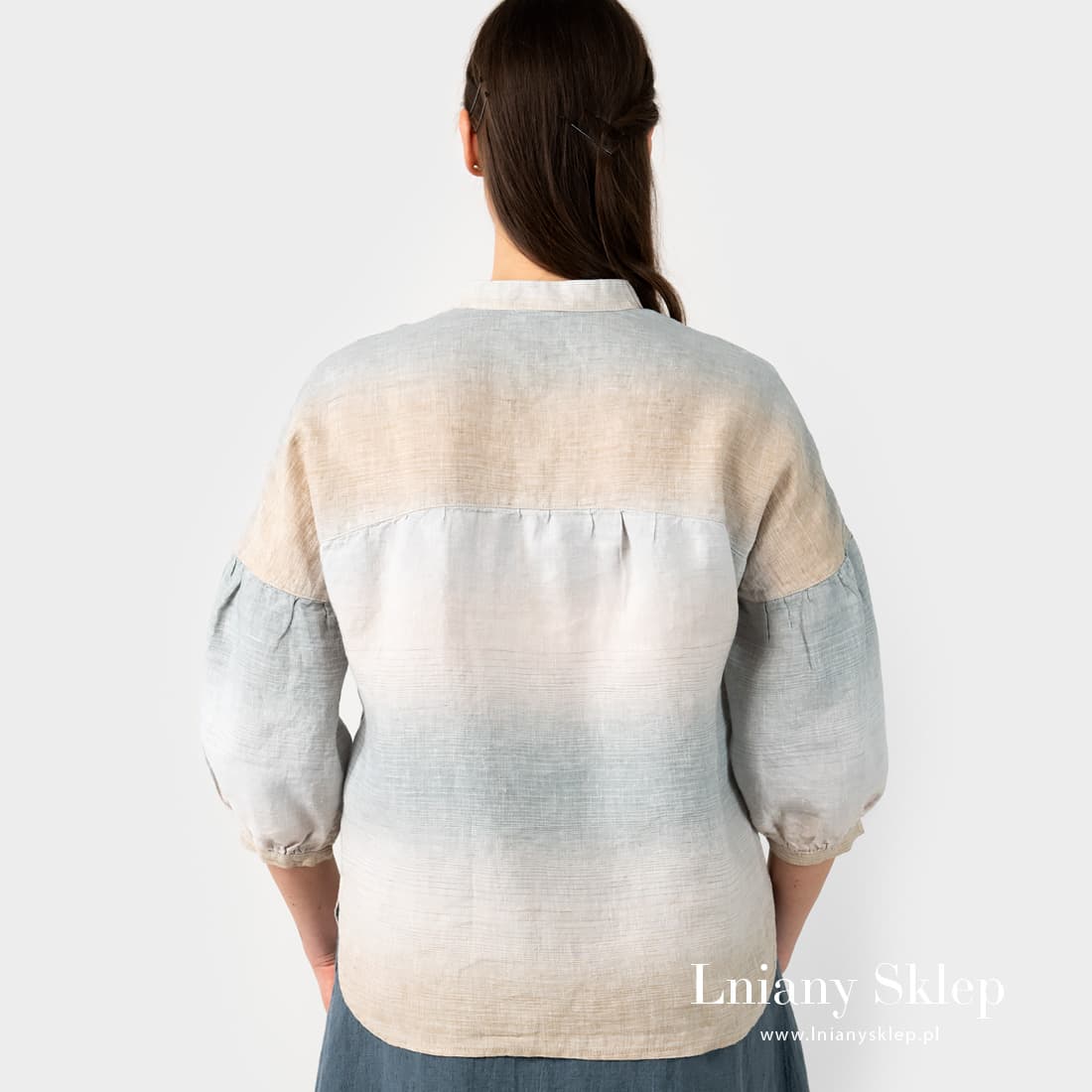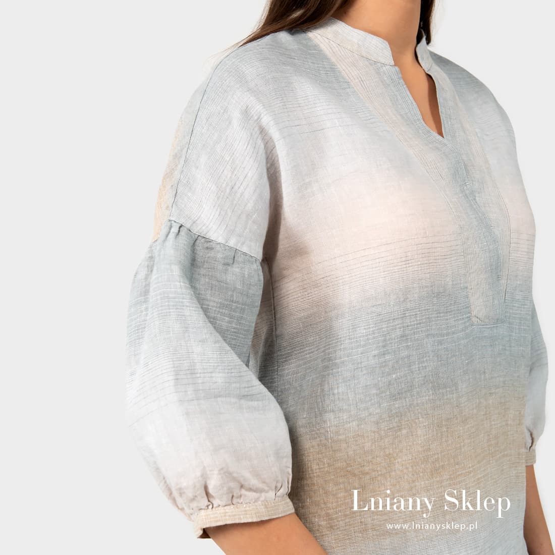 - Detale: dekolt „V”, bufiasty rękaw 3/4