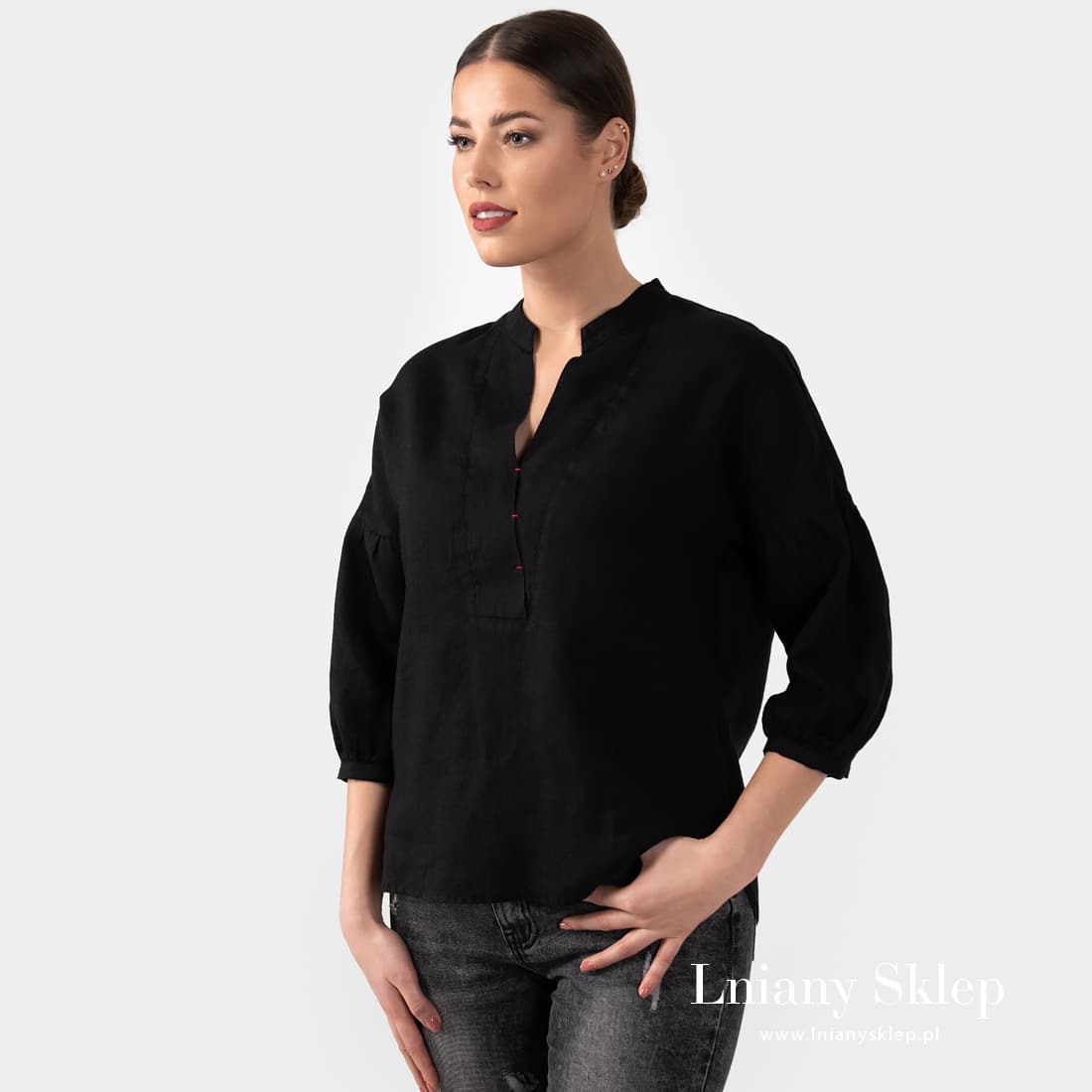 - Detale: dekolt „V”, bufiasty rękaw 3/4