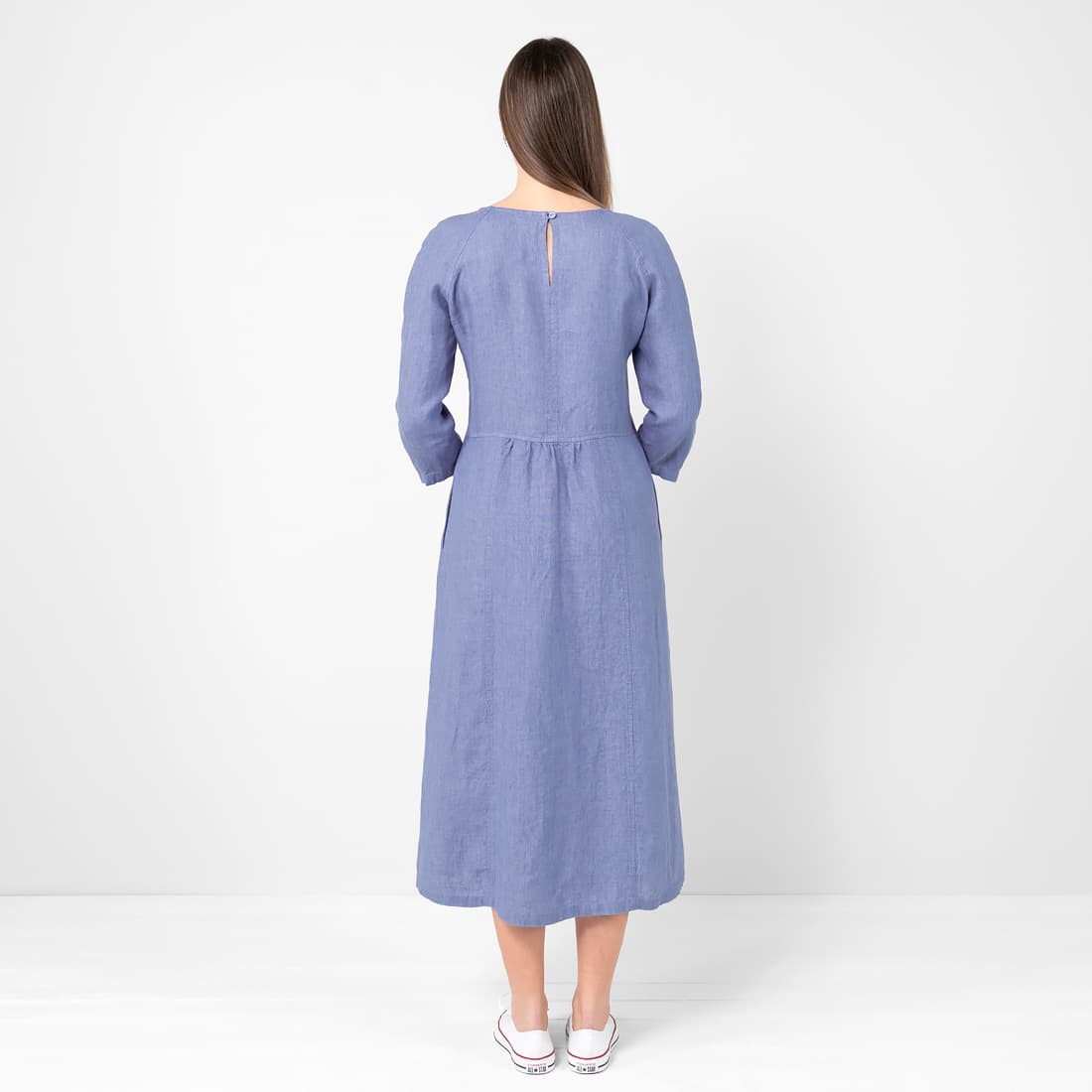 - Szczegóły: 3/4 rękaw; zaokrąglony dekolt, kieszenie, zapięcie na guziczek z tyłu, lekkie marszczenie przy talii