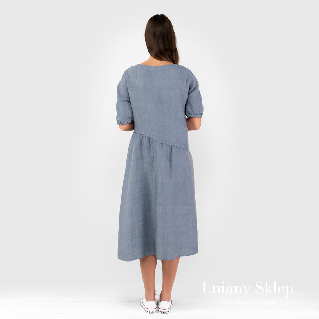 - Sukienka z pranego, miękkiego lnu.