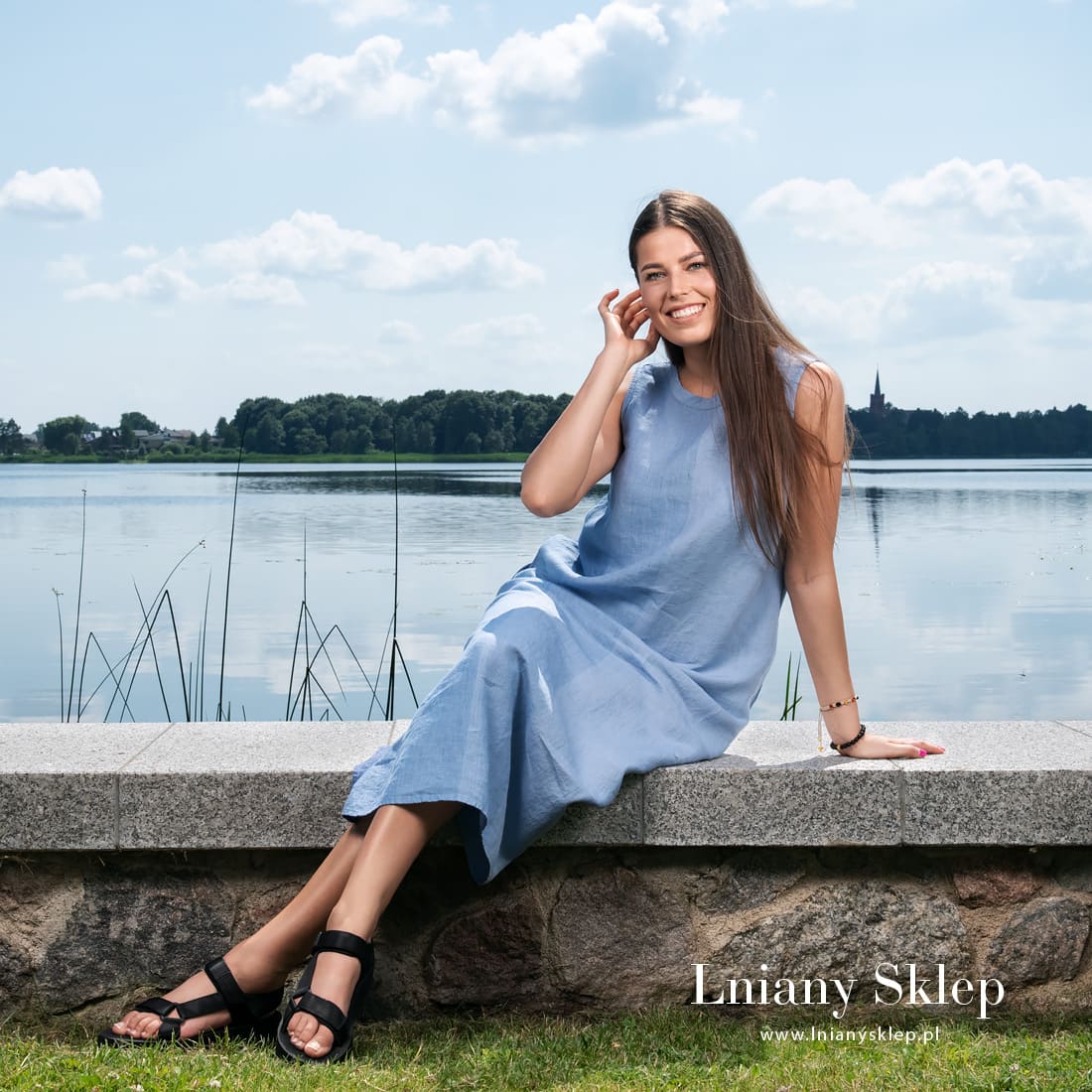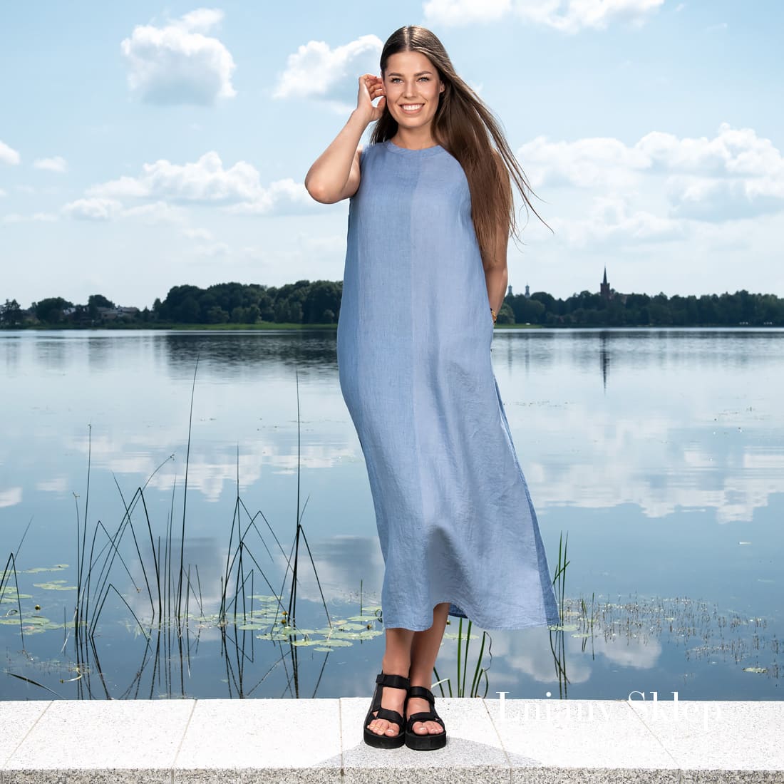 - Szczegóły: bez rękawów, zaokrąglony dekolt, kieszenie, kokardka z tyłu