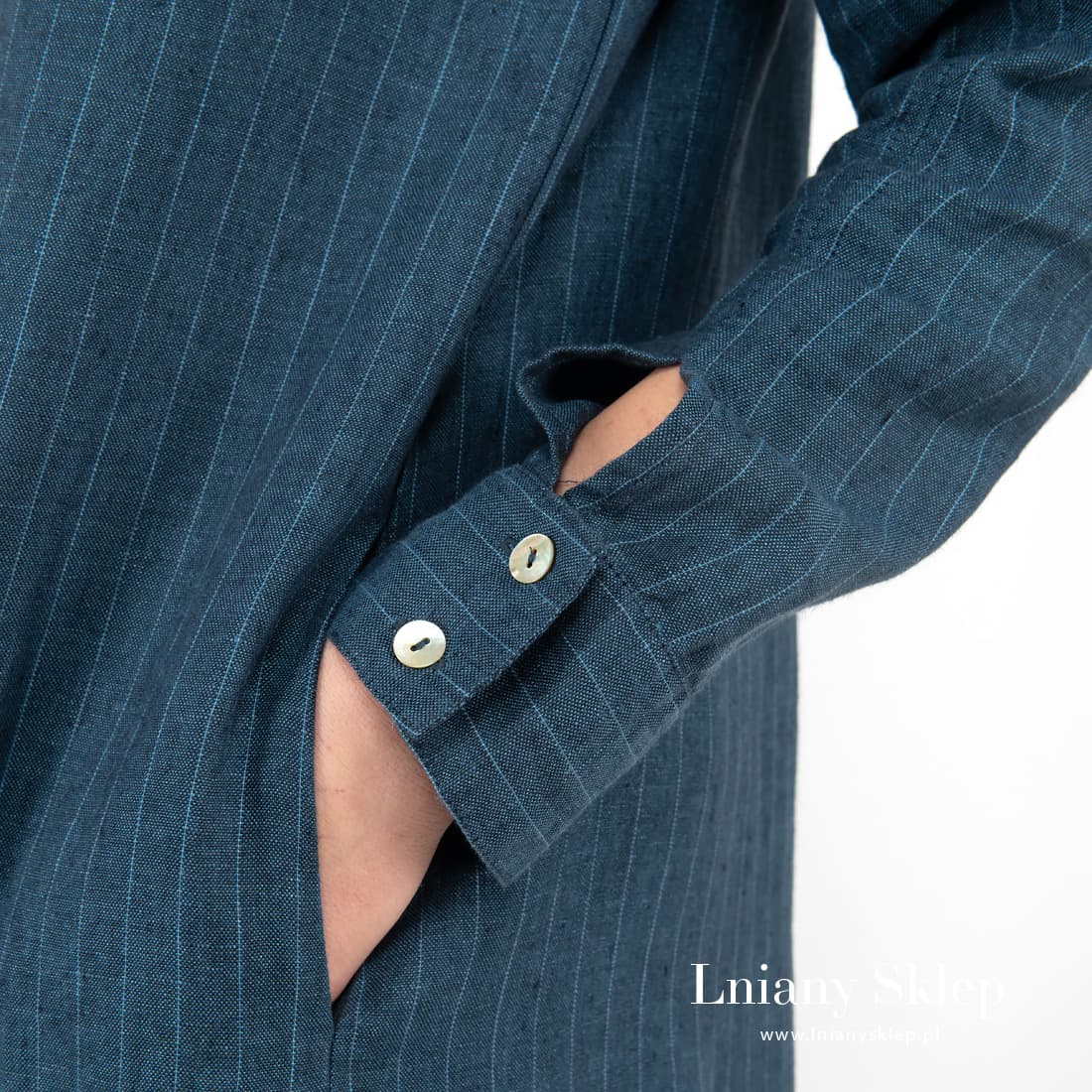- Szczegóły: zapinana na guziki z przodu, długi rękaw, kieszenie, odcinana falbana z przodu w dole, rozporki