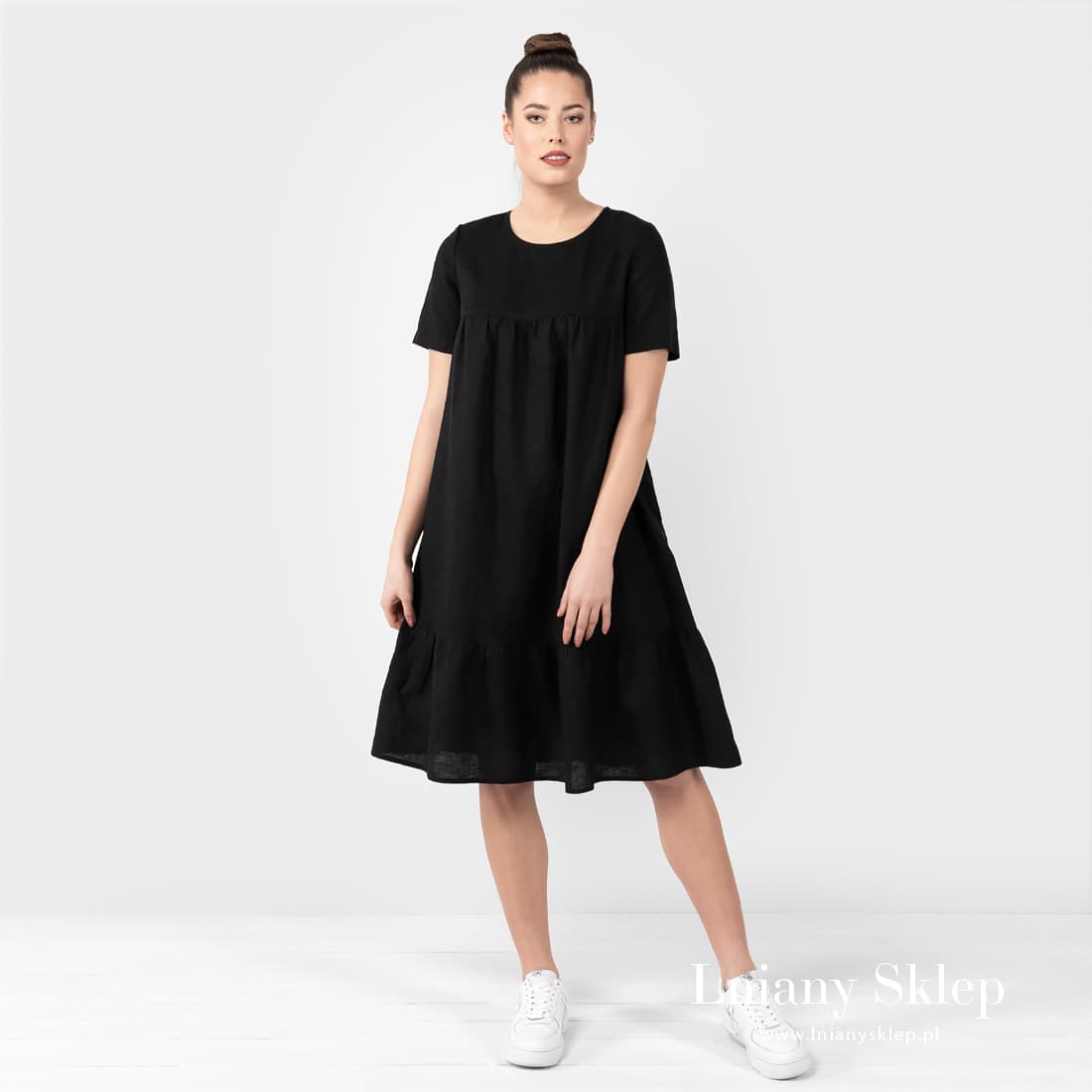 - Detale: krótki rękaw, kieszenie, marszczona przy biuście i w dole, zapięcie na guzik z tyłu