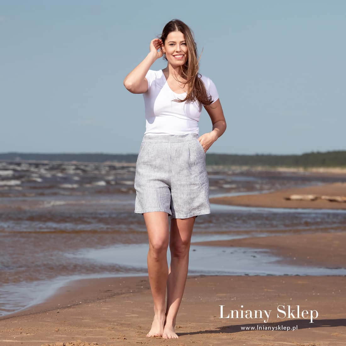 - Modelka na fotografii ma 180cm wzrostu, na niej produkt rozmiar 40