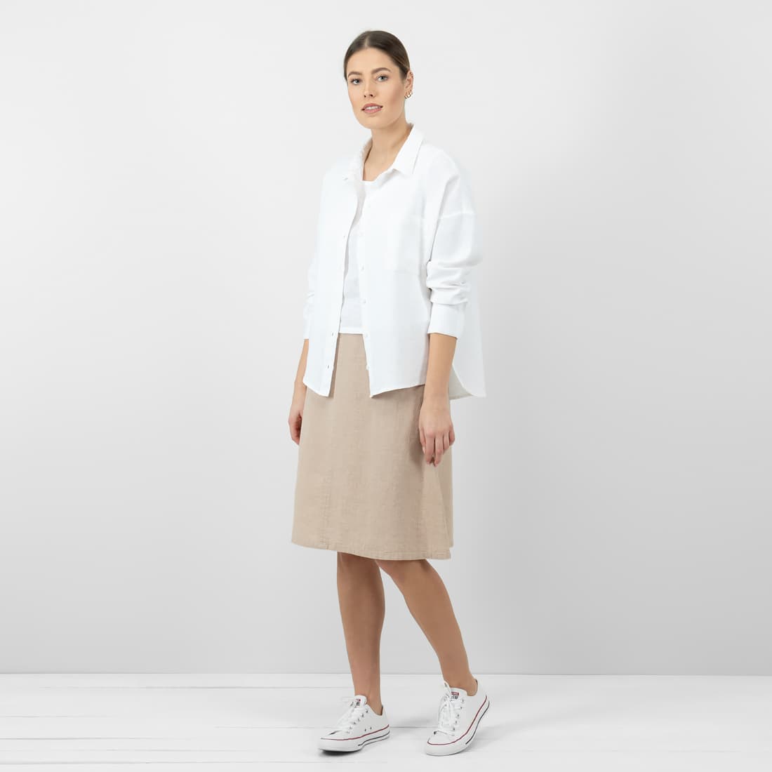 - Model: długość sięga kolan, rozszerzana ku dołowi