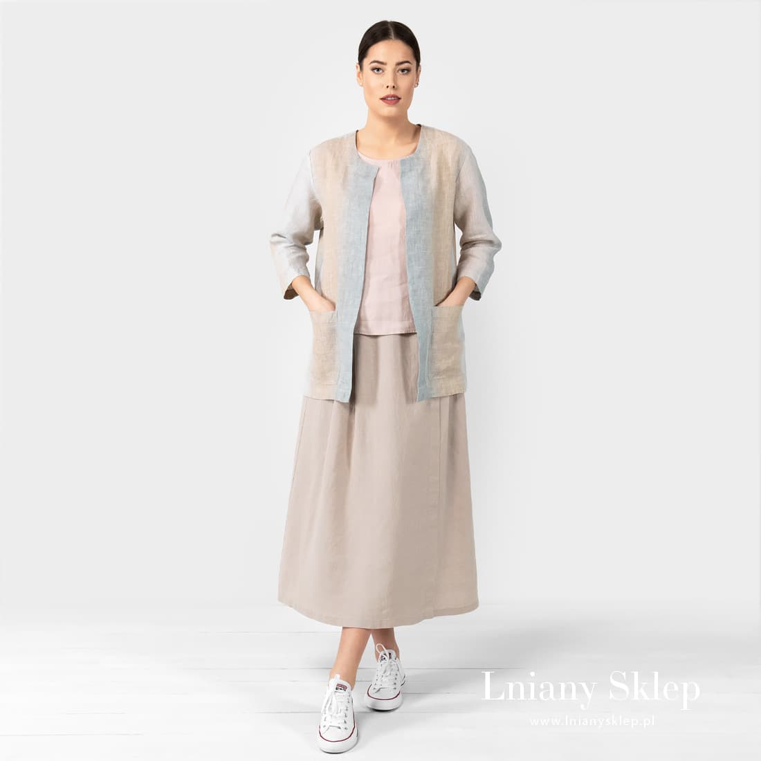 - Model: długa, trapez, „na kopertę”, zapina się na guzik