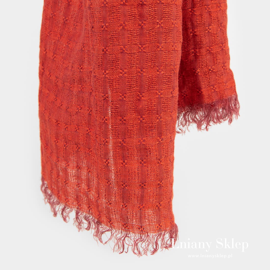 - Kolor: wytkany z czerwonej o brązowym odcieniu j i czerwonej przędzy