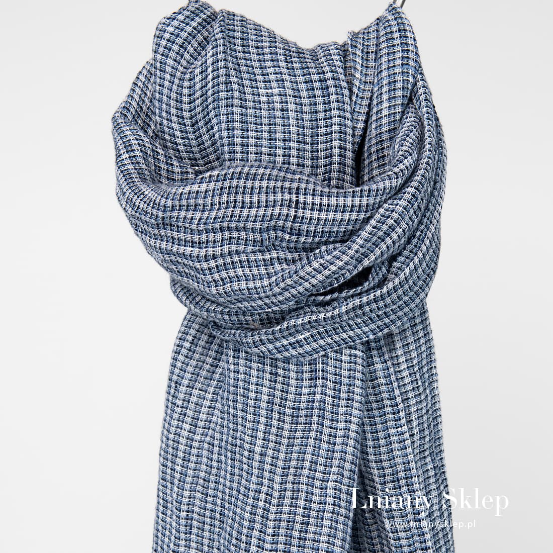 - Niebieski w krateczkę szalik.
