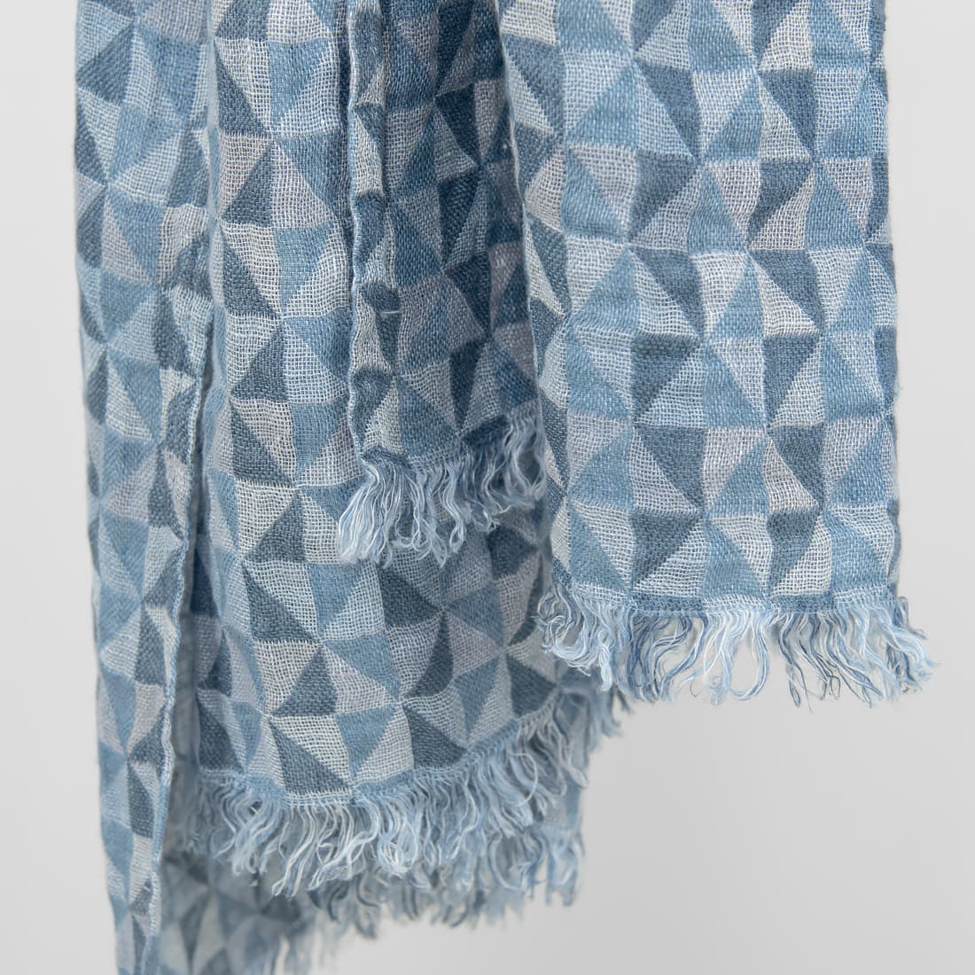- Kolor: wytkany z przędzy w kilku odcieniach niebieskiej i szarej