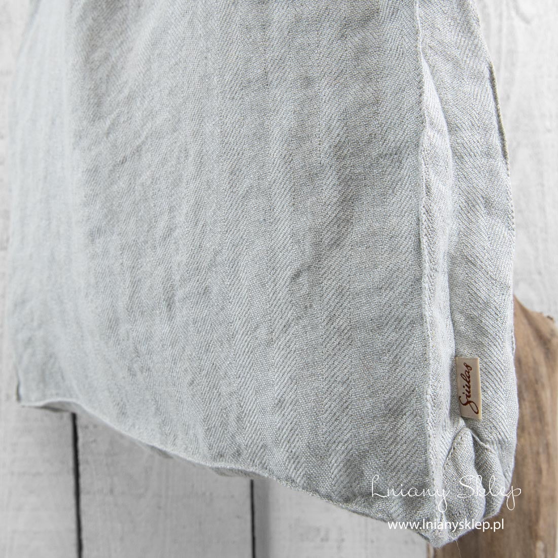 Uwaga: Do wytkania tkaniny, z której uszyto produkt, użyto niebarwionej przędzy lnianej, dlatego odcień produktu realny i widoczny na fotografii może nieco się różnić. Odcień powtórnie zamówionego produktu – z nowej partii – też może się różnić od zamówionego wcześniej. Produkt został uszyty z tkaniny poddanej praniu, dlatego jego wymiary mogą nieco się wahać.