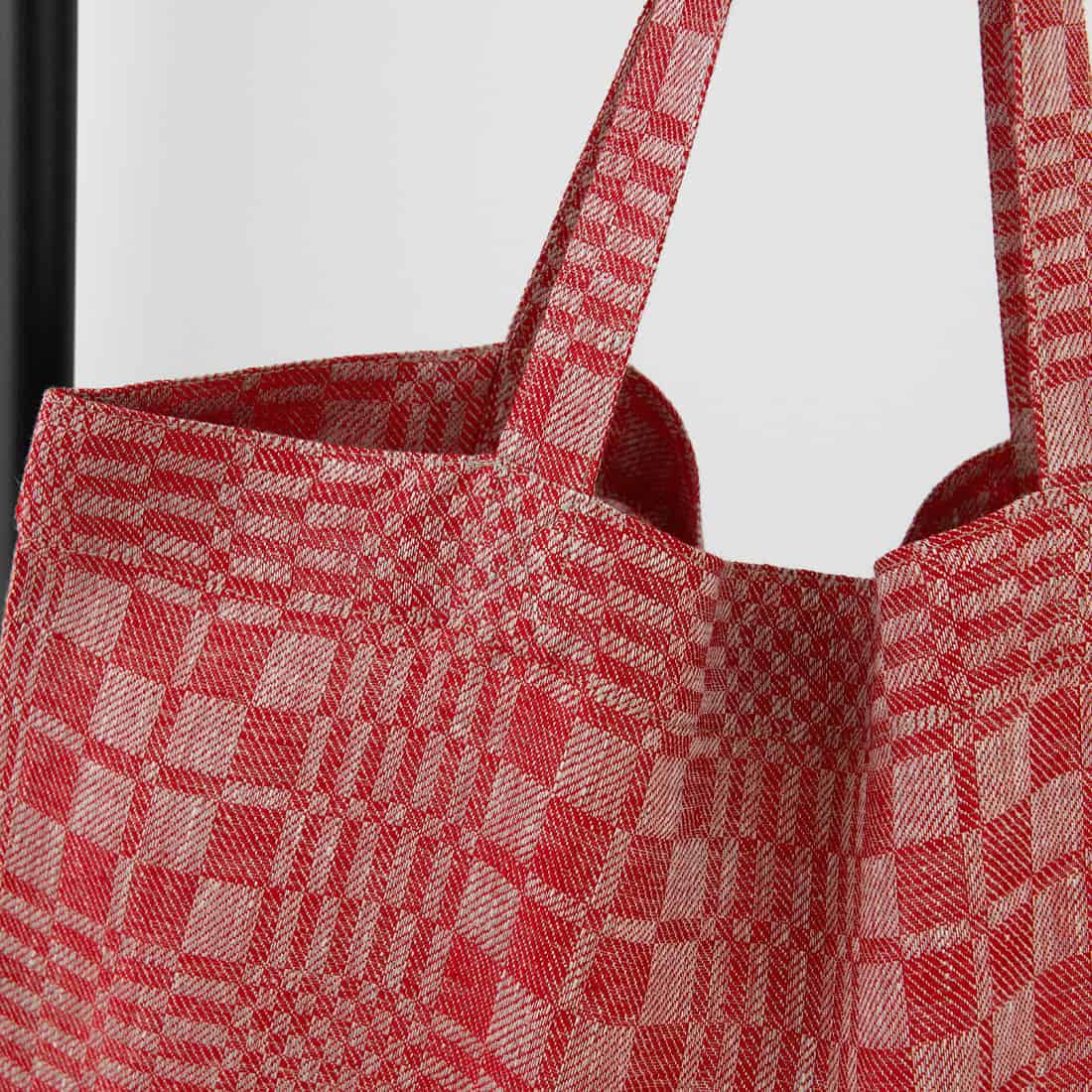 - Kolor: wytkana z przędzy niebarwionej (szara w piasek) i czerwonej